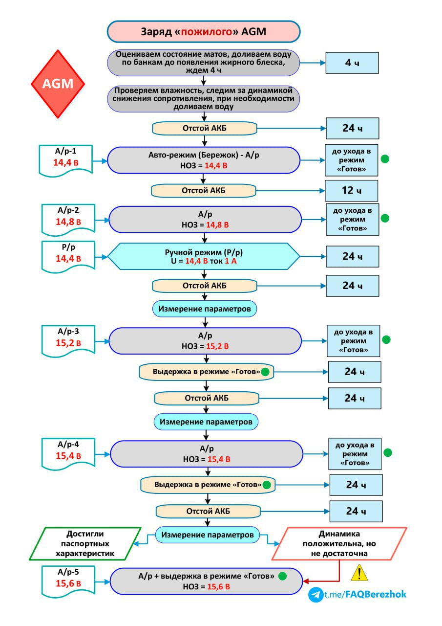 Ниже схема заряда AGM акб зарядным Бережок. Есть группа в телеграмме Бережок.