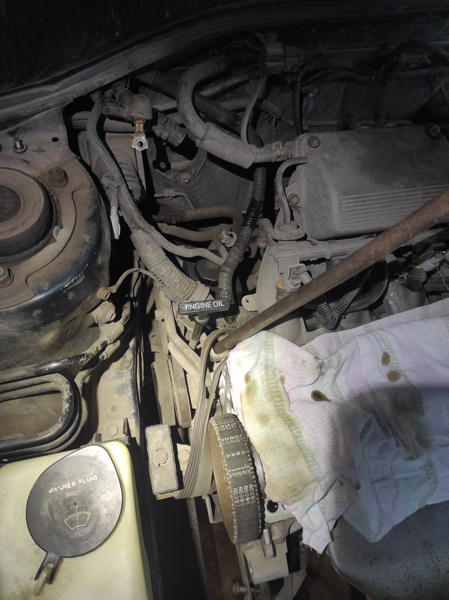 Снял кожух ГРМ, ослабил натяжной ролик, наставил кучу меток и скинул ремень.