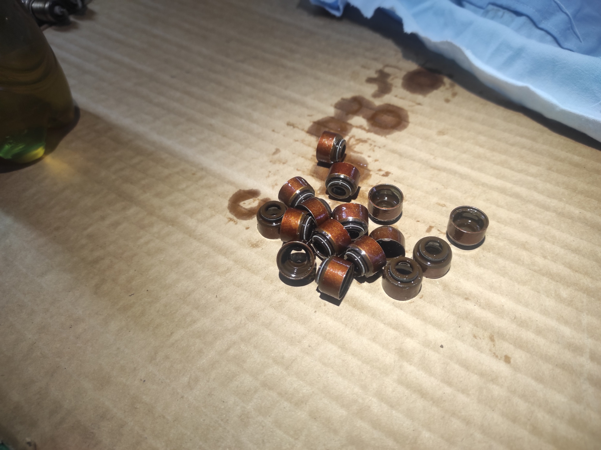 Ну что же, несмотря на капиталку, а соответственно и замену колпачков, 25000 км назад, обнаружил я начинающийся масложор. Этот мотор масло есть не должен, поэтому доливка масла для меня недопустима, особенно после переборки двигателя. Значит где-то что-то пошло не так, ведь после капиталки расход был нулевой. Обратился к коллективному разуму большинство мнений совпало с моим – маслосъёмные колпачки надо смотреть. Задумано, продумано – приступил к реализации.