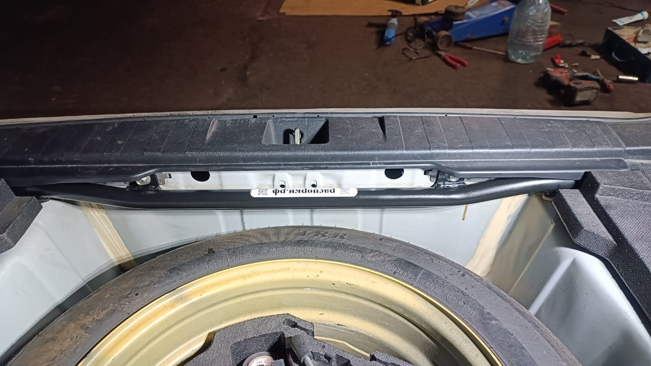 Устанавливается она в багажник и связывает крайние задние точки лонжеронов с панелью прилегания нижней двери.