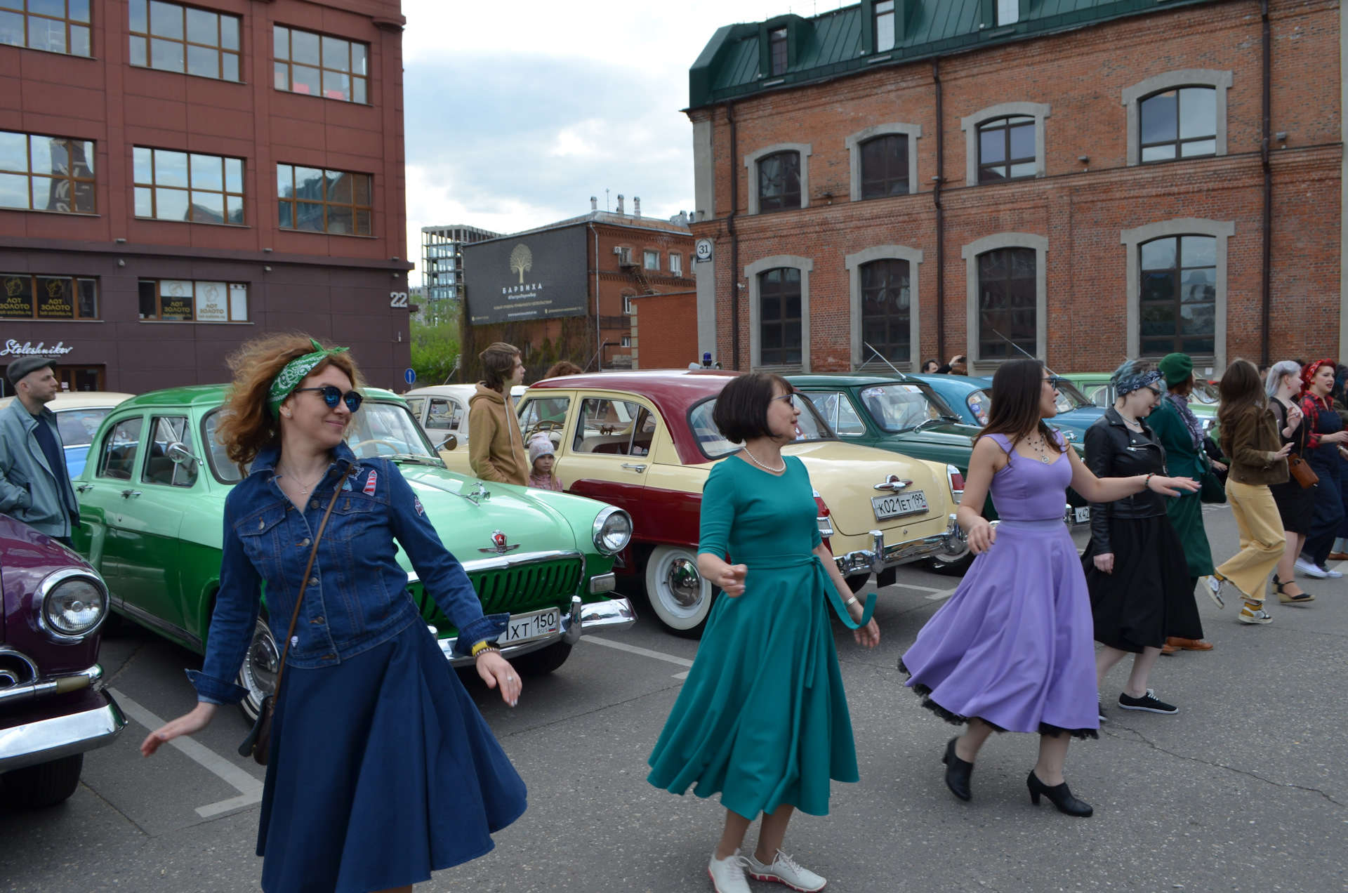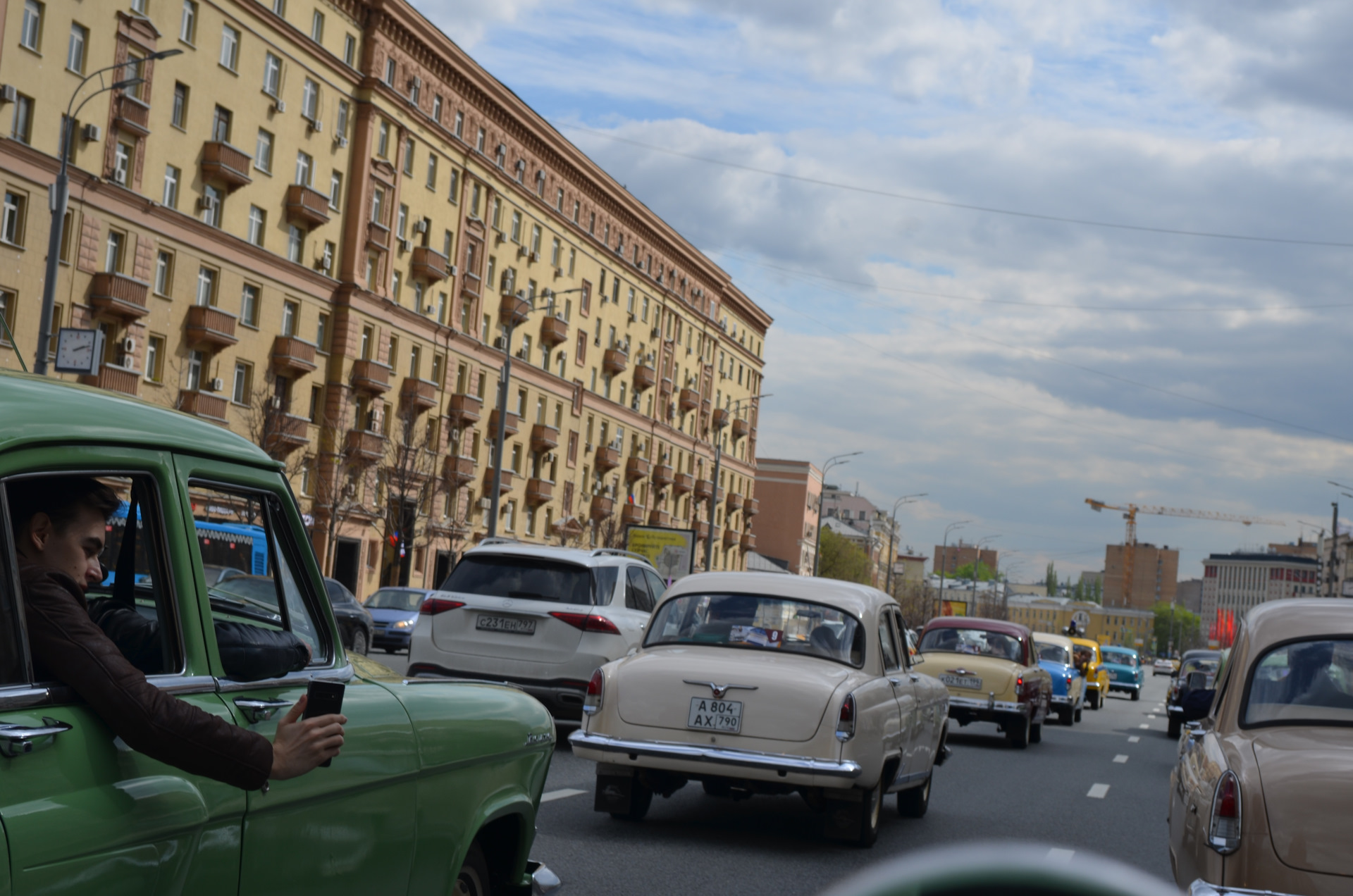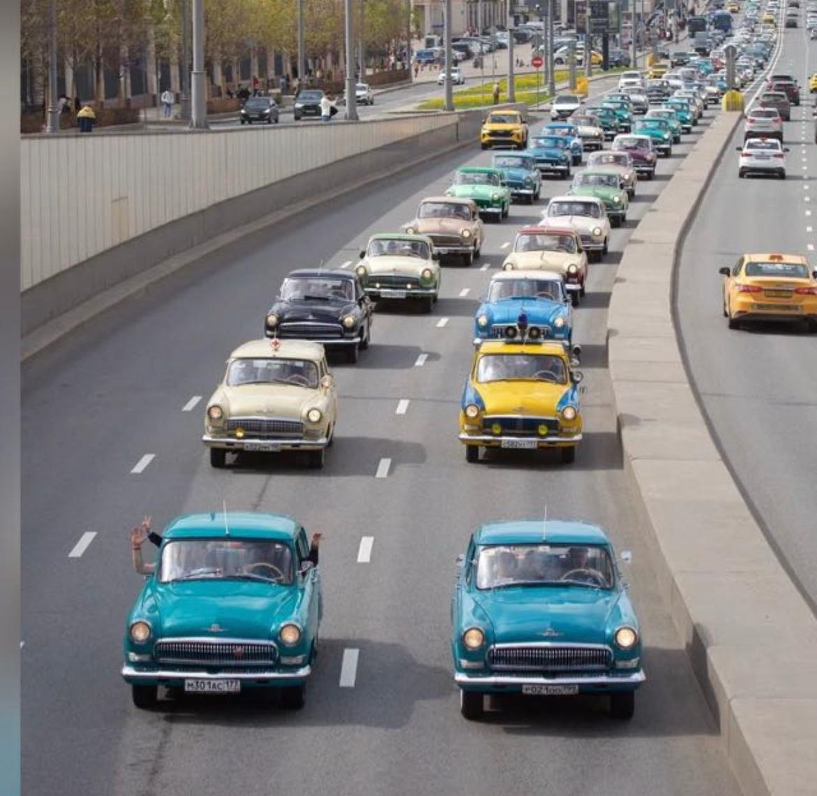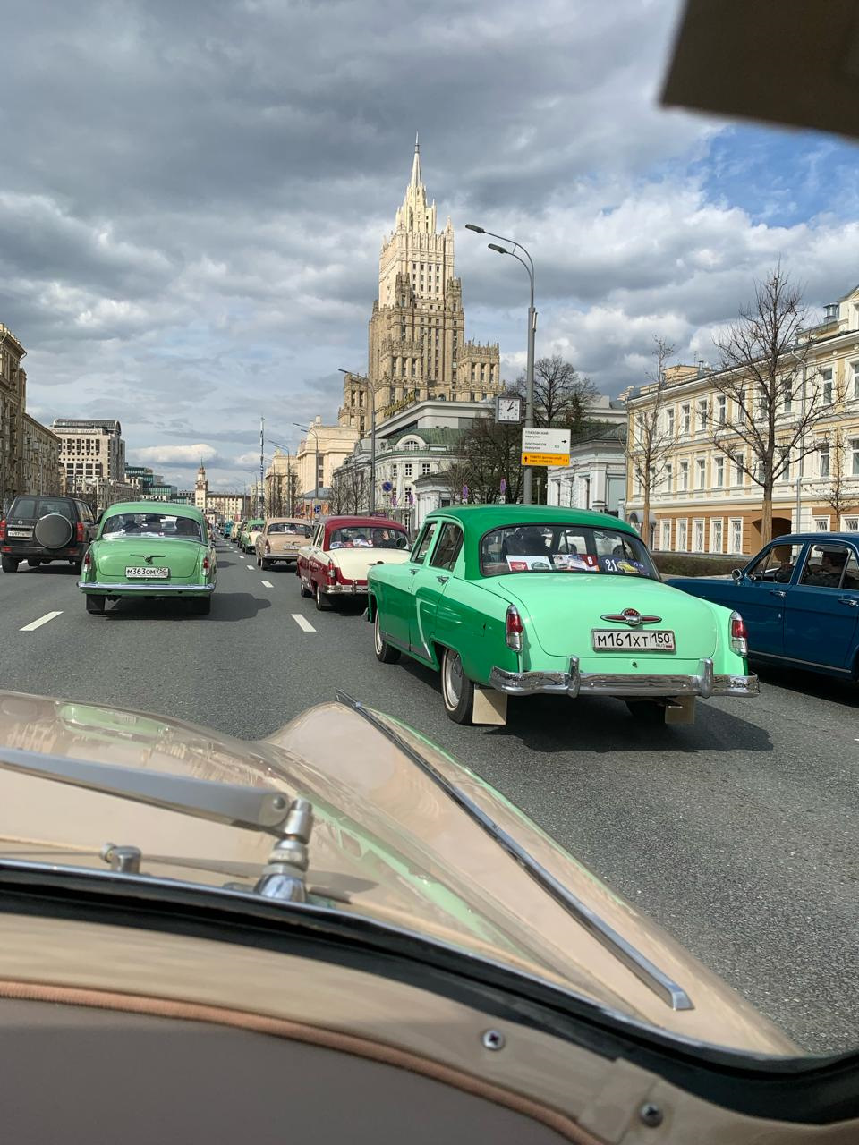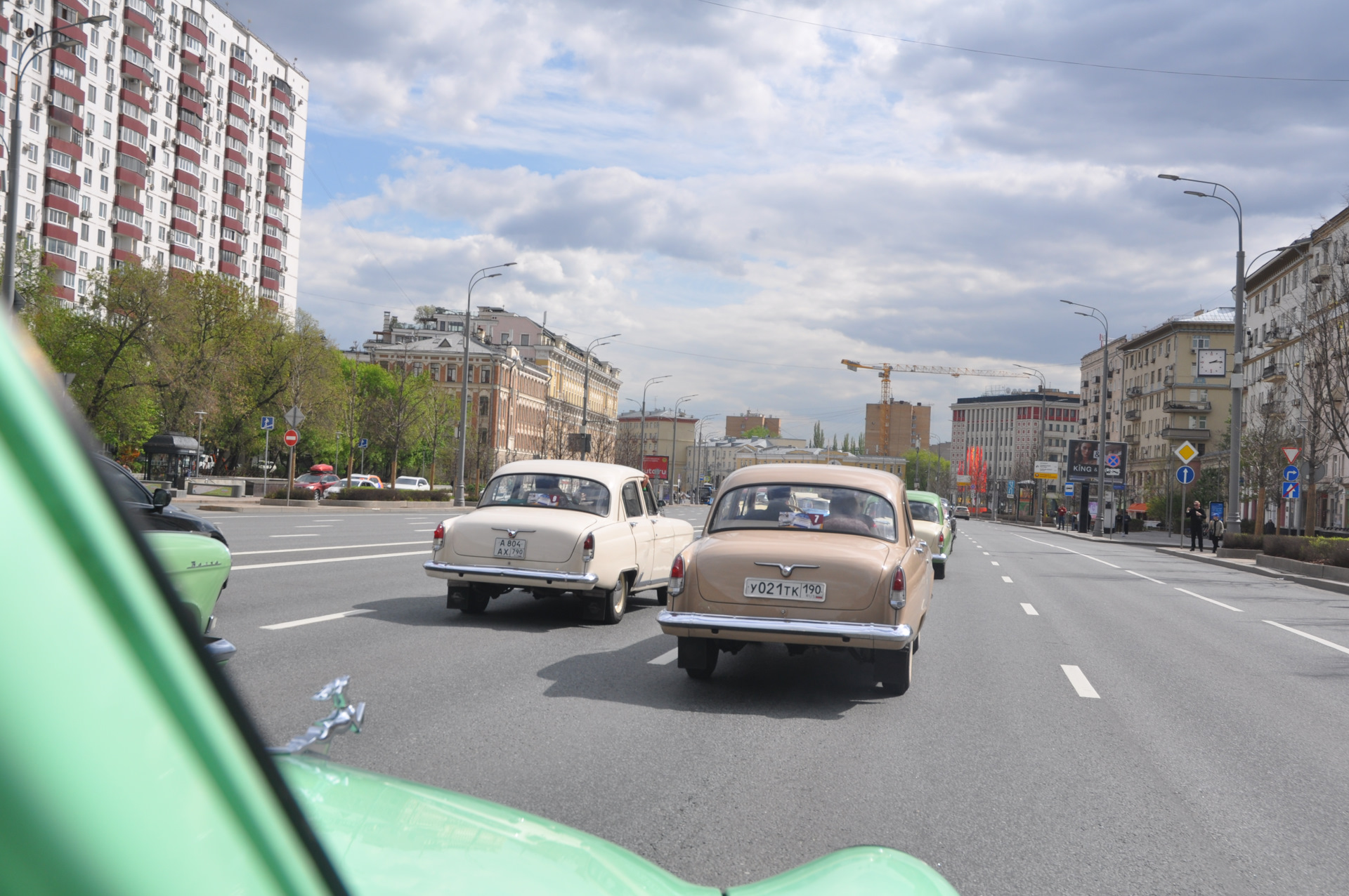 Потом еще немного свободного времени, команда на общее фото, и по машинам и старт колонны Волг по садовому в сторону дербеновской набережной и финиш на давно всеми полюбившейся территории Новоспасского.