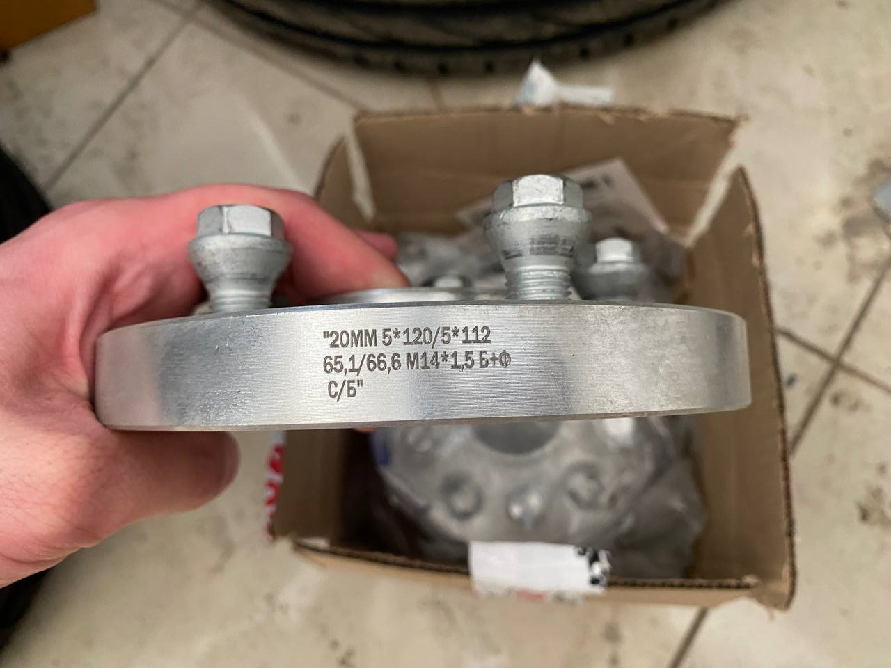 Сделав необходимые замеры, заказываю в проверенном месте алюминиевые проставки с переходным крепежным размером 5x112-->5x120, ЦО 66.6-->65.1 и толщиной 20мм, благо вылет позволяет 👌.