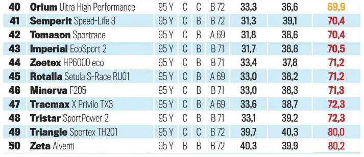В котором принимают участие 50! летних шин абсолютно разных производителей. Каково же было мое удивление, когда я увидел тот самый Triangle Sportex TH201 на 49 месте, а Tracmax X-Privilo TX3 на 47ом… 😒