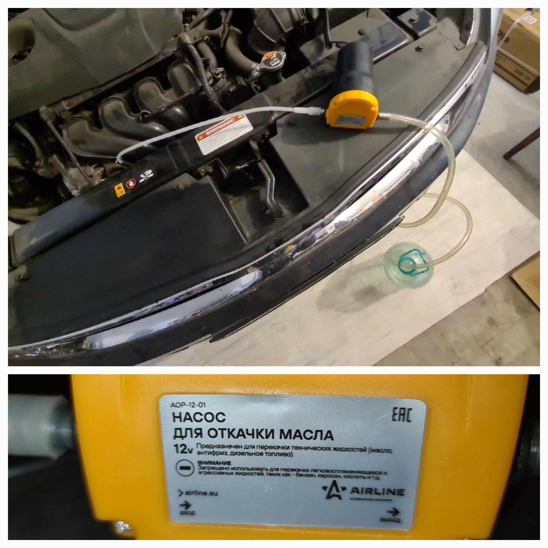 Масло откачал насосом, через щуп, т.к. ямы в гараже нет. После пробовал выкачать остатки с поддона шприцом, безуспешно потому что насос сделал свою работу на 100%. Ссылка на него: