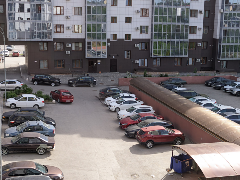 Поскольку день был рабочий, хоть и суббота, нашлось место для парковки прямо во дворе, прямо под окнами.