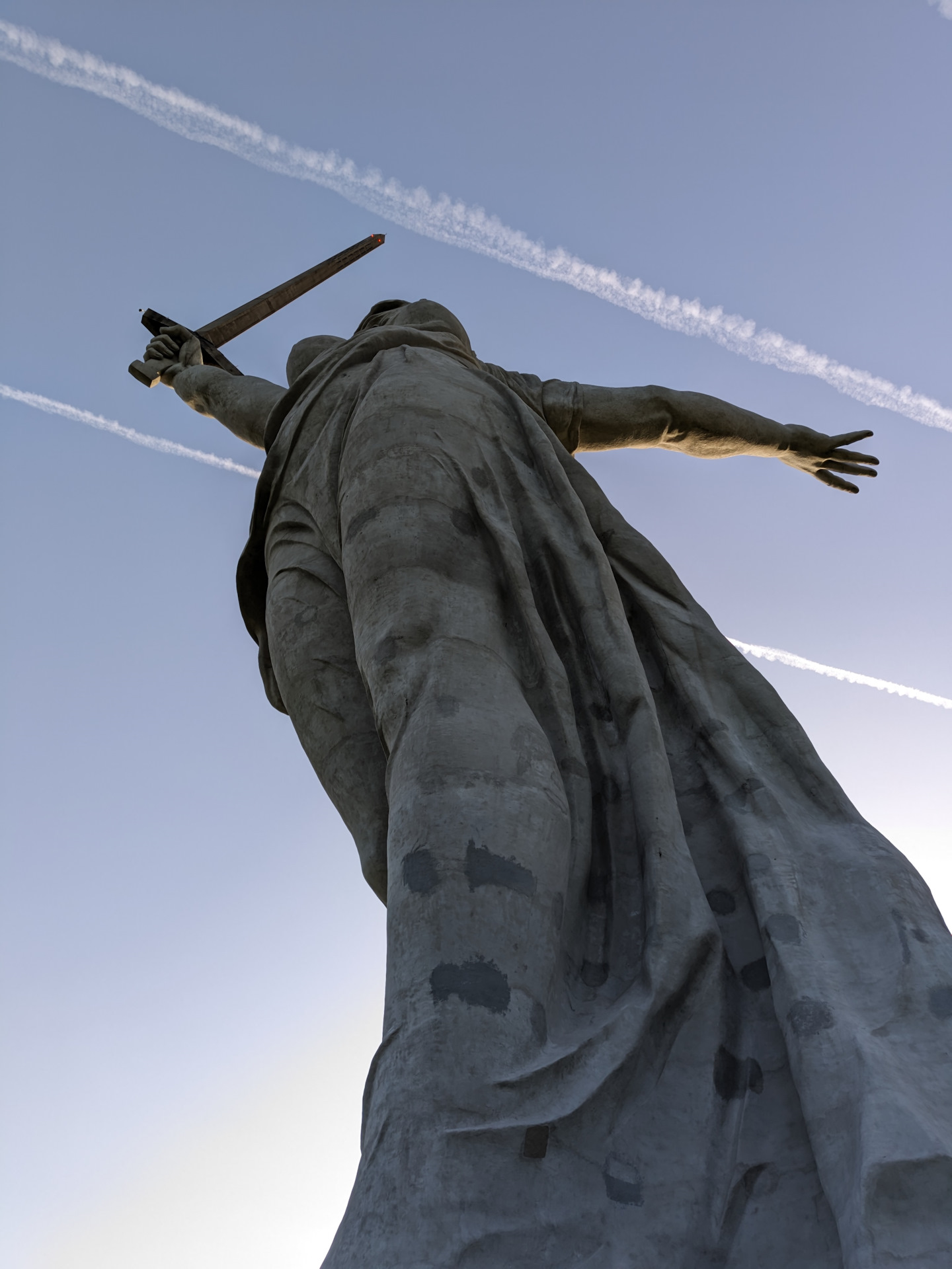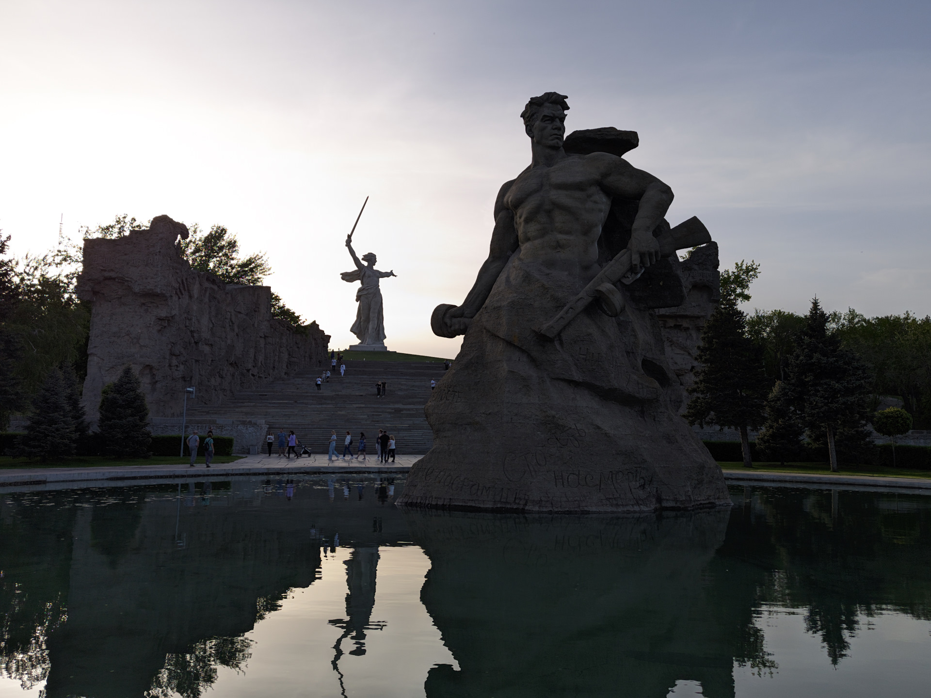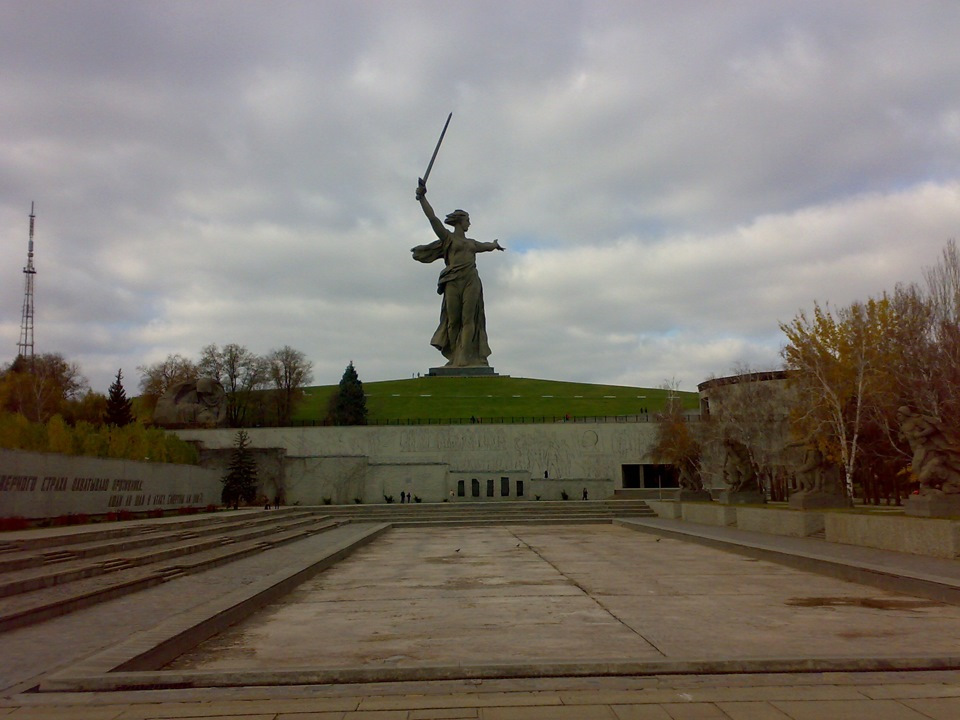 И выходим наверх, прямо к монументу Родина Мать. Но сзади.