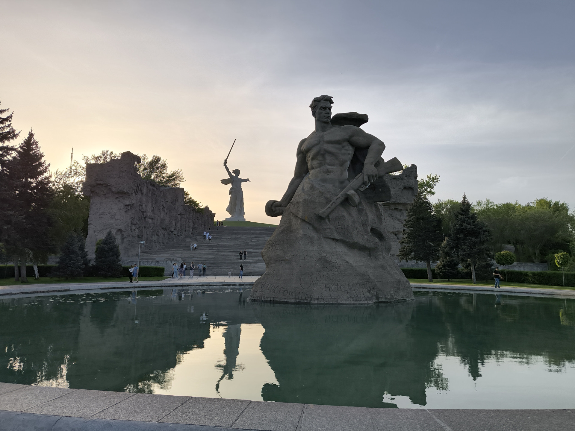 Отправились осматривать комплекс. Ведь целью нашей поездки в Волгоград, было именно это. Показать детям. Я в детстве тут был, правда очень давно, воспоминания смутные. В советское время такие экскурсии были обычным делом в школах. Даже у нас. Жена тоже была, несколько лет назад, в командировке. А детям-надо было показать. Тем более, что младшая, в художке, недавно рисовала монумент с фотографии, ко Дню Победы. А тут вживую. Масштабы поражают, не только детей.