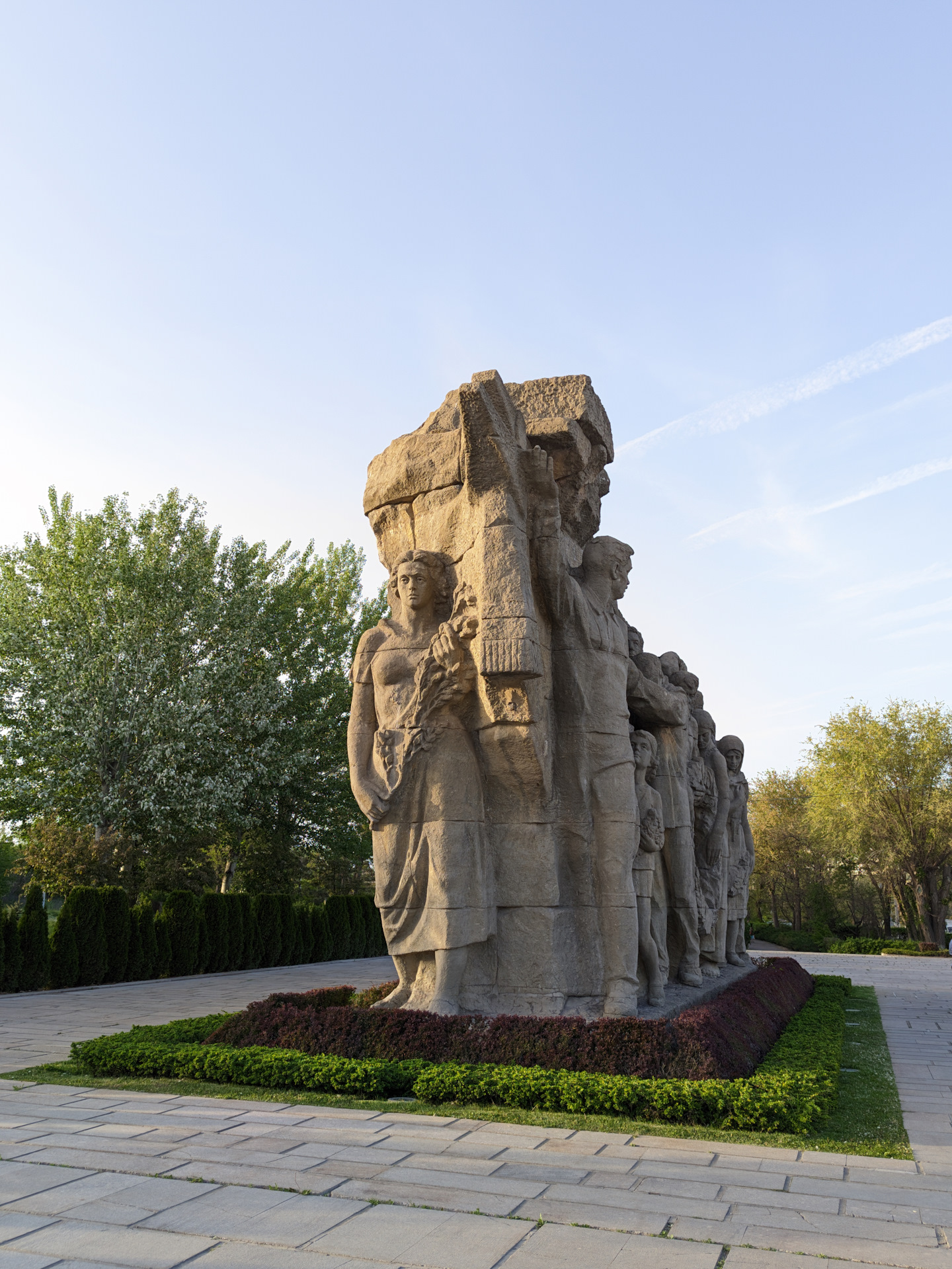 Там есть таблички с данными о том, кто создавал этот памятник. По пути- захоронения героев Сталинградской битвы.