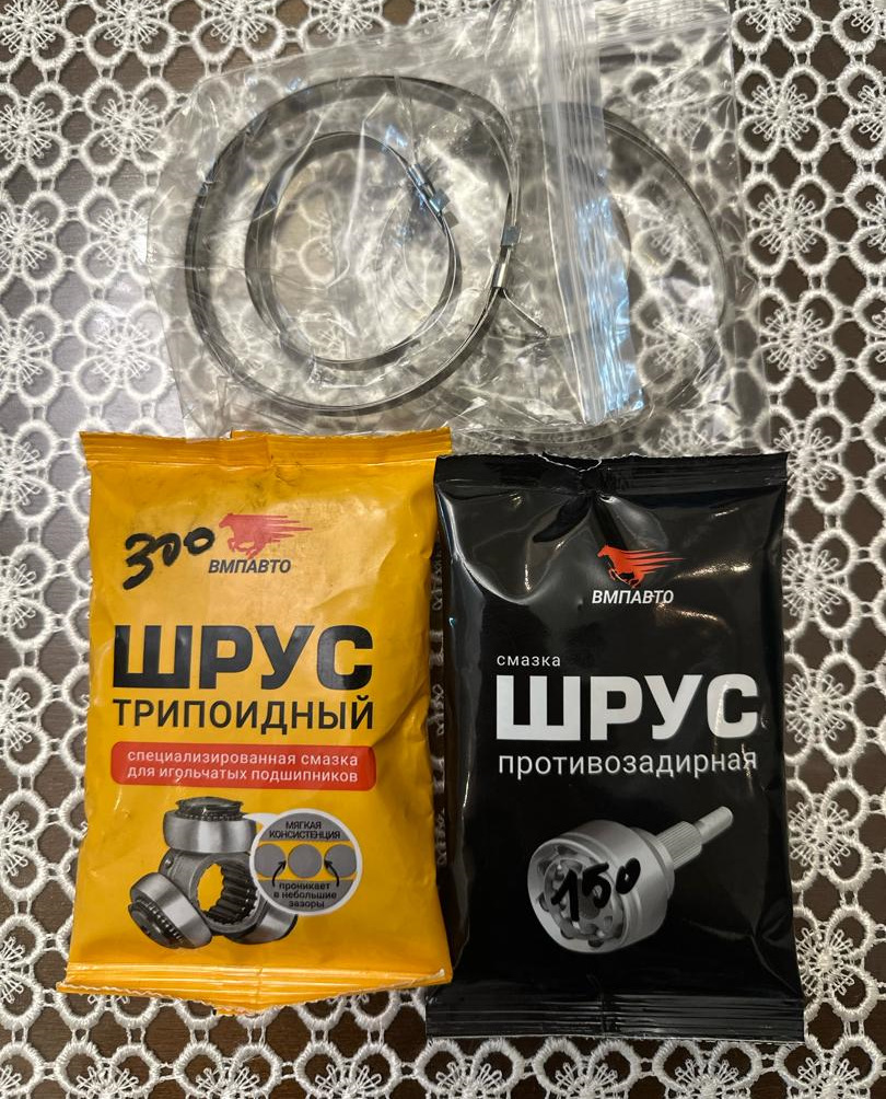 Заменили смазку и хомуты в левом шрусе, так как из под пыльника начало выдавливать старую смазку.