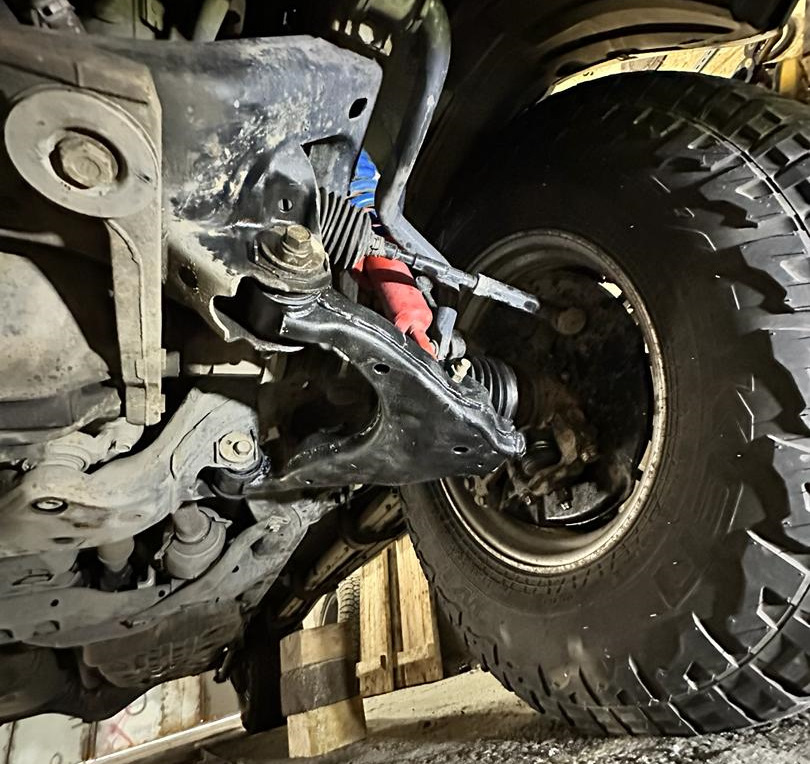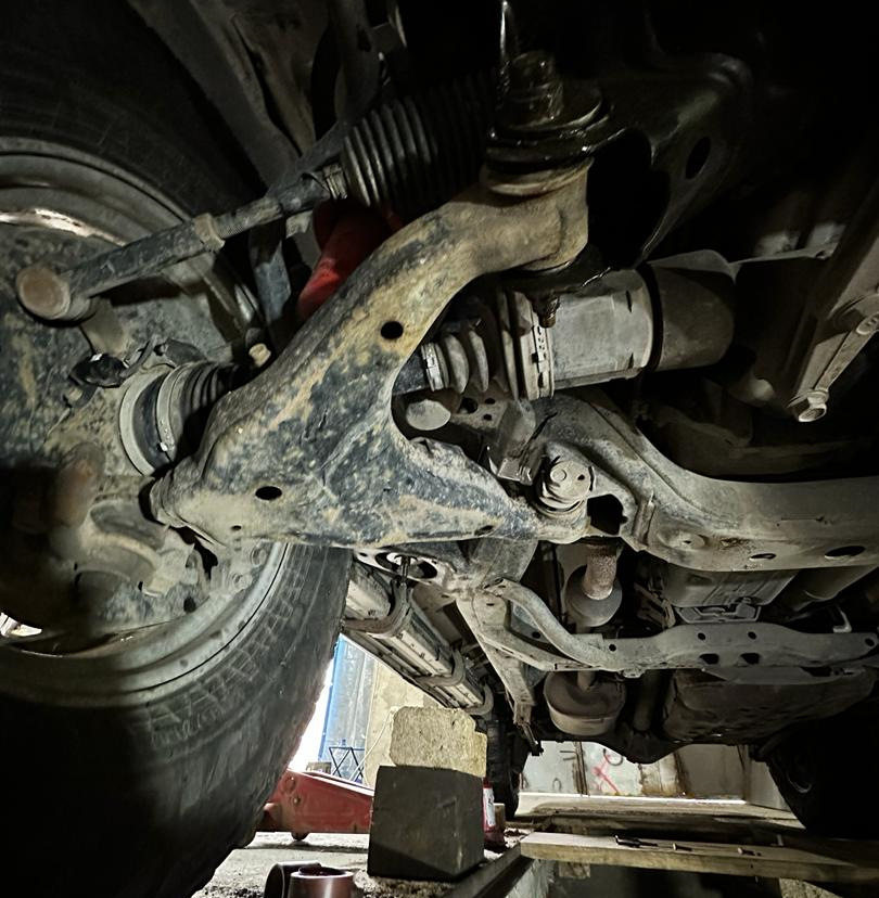 Выполнили обслуживание передних нижних рычагов, заменил салентблоки и шаровые опоры. Саленблоки были надорваны, в то время как шаровая все еще была в хорошем состоянии. Удивительно, учитывая, что меняли их почти 10 лет назад.