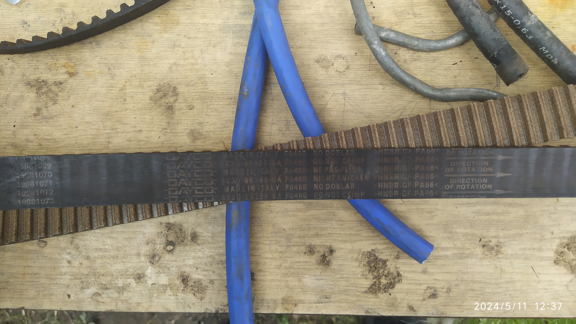 Вообщем решил я поменять эти ремни так как пробел уже 130. Фото замены ремней не делал но приобрёл ремни ( на авито) сказали что будет оригинал по итогу пришли не оригинал так как на оригинале выдавлены надписи а цвет надписи другой, самое сложное было забраться до ТНВД ремня а так в целом если есть представление что это такое и с чем его едят то никакой сложность, может конечно от того что делал это сам и первый раз много чего лишнего откручивал но ушло на всё про всё день делов в 10 начал в 17.00 закончил. Что могу сказать о ремнях которые снял состояние нормальное у них и думаю они свободно ходить по 170 т.к почему регламент уменьшили не очень понятно может с целью того чтоб по чаще а сервисе бывать. Для себя сразу пока разобрал увидел что подтекает маслом и чуть антифризом масло охладитель который стоит в развале. Думаю что менять его не буду а попробую просто заменить прокладки в нём если не получиться то попробую заменить целиком но это уже в следующий раз