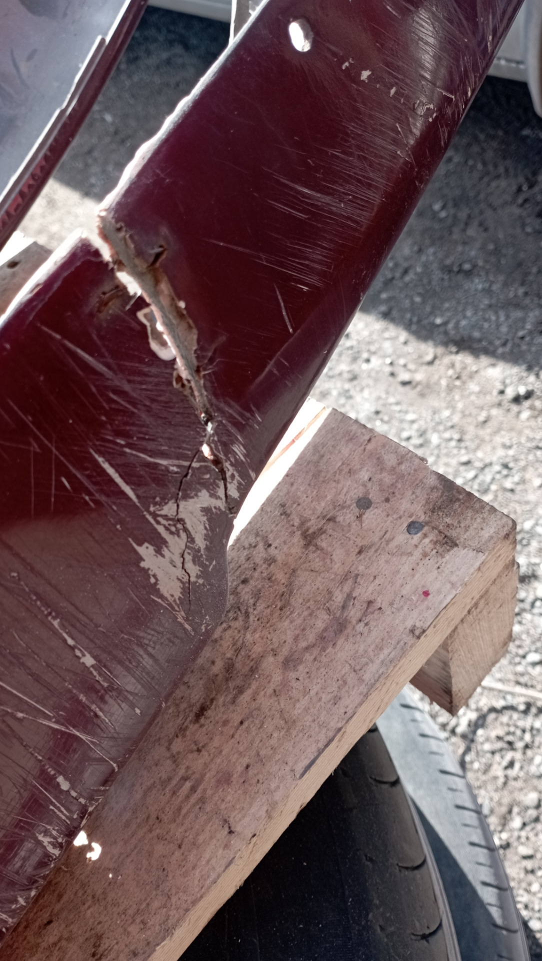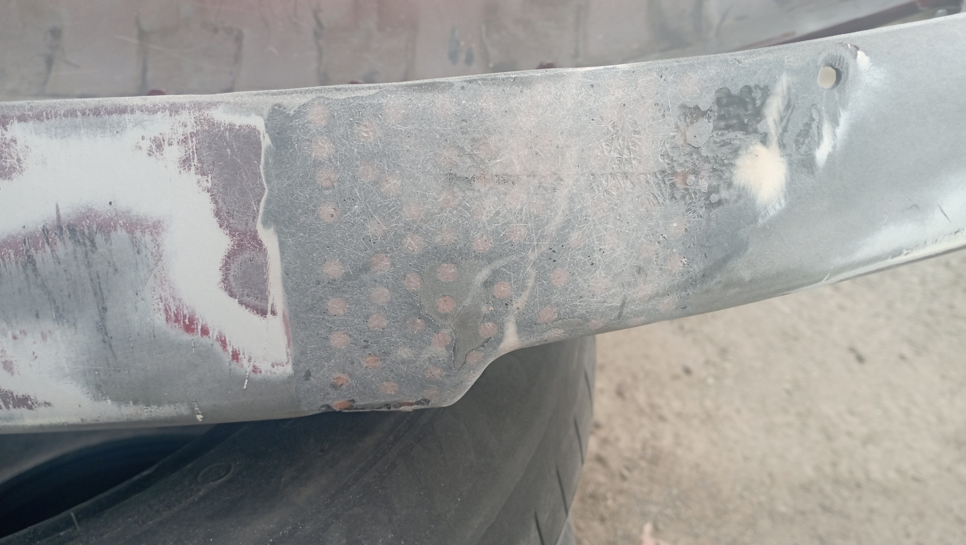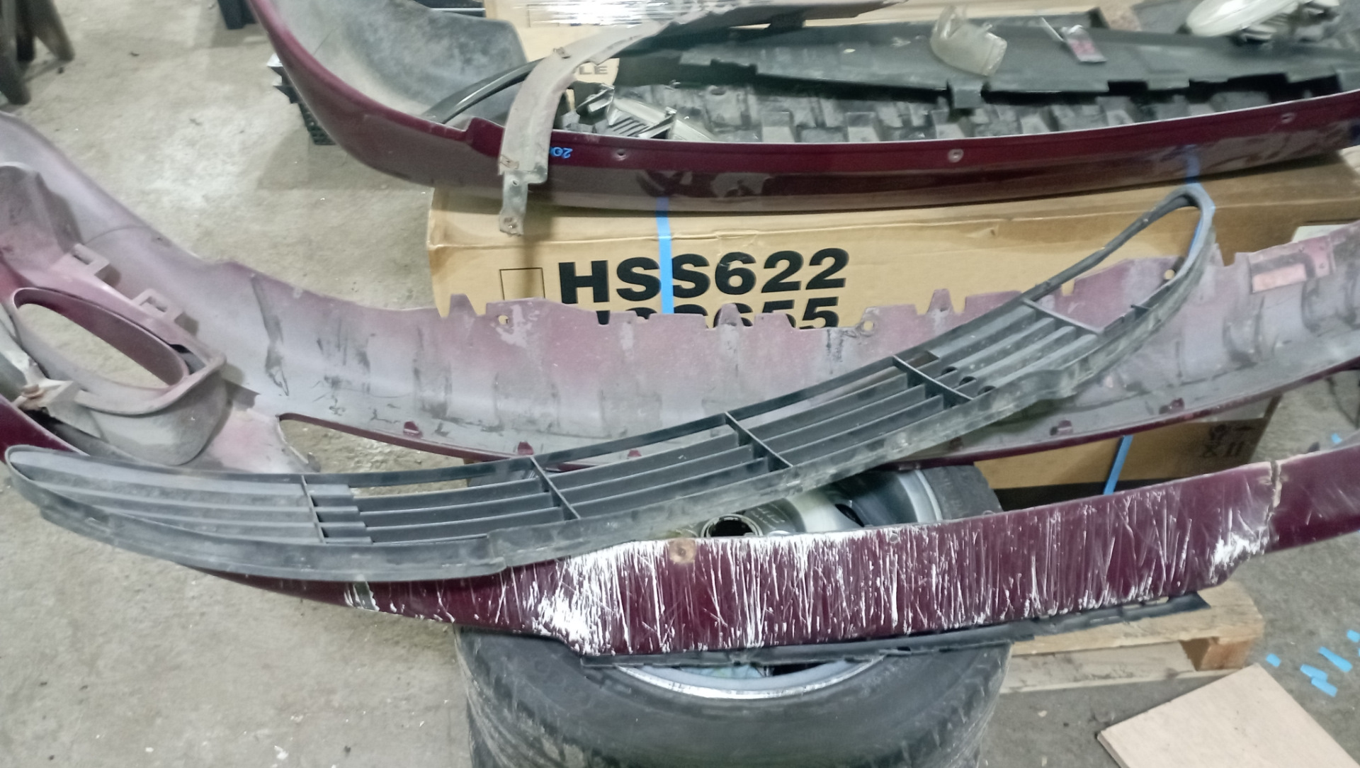 Итак добрался наконец до бамперов. Задний у меня не один и все они не требуют ремонта, а вот с передним работы много. Тут и много трещин и старые ремонты при помощи проволоки и металлических пластин и отсутствие нескольких креплений решётки, куча лишних отверстий от саморезов и проблемы с геометрией.
