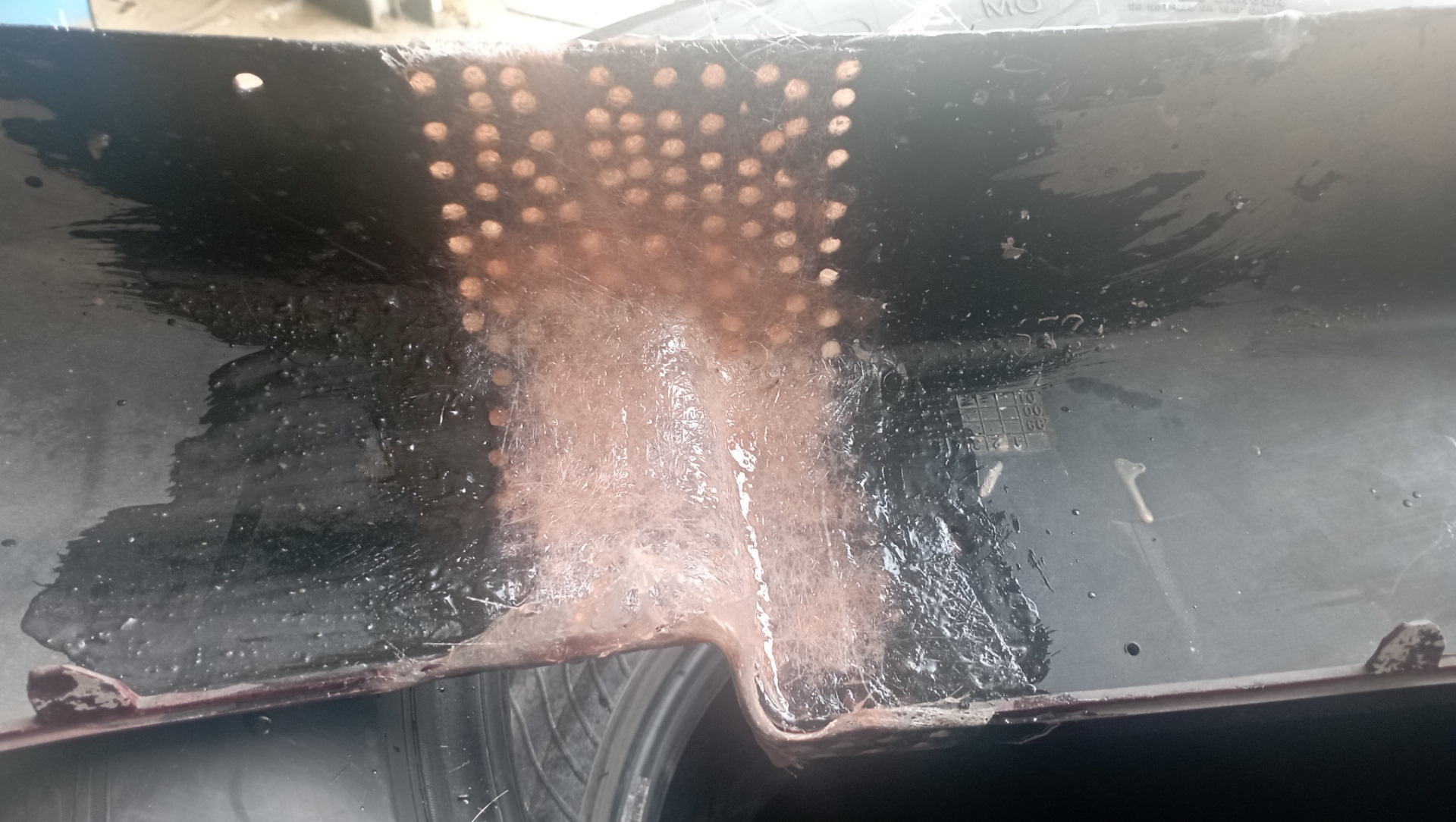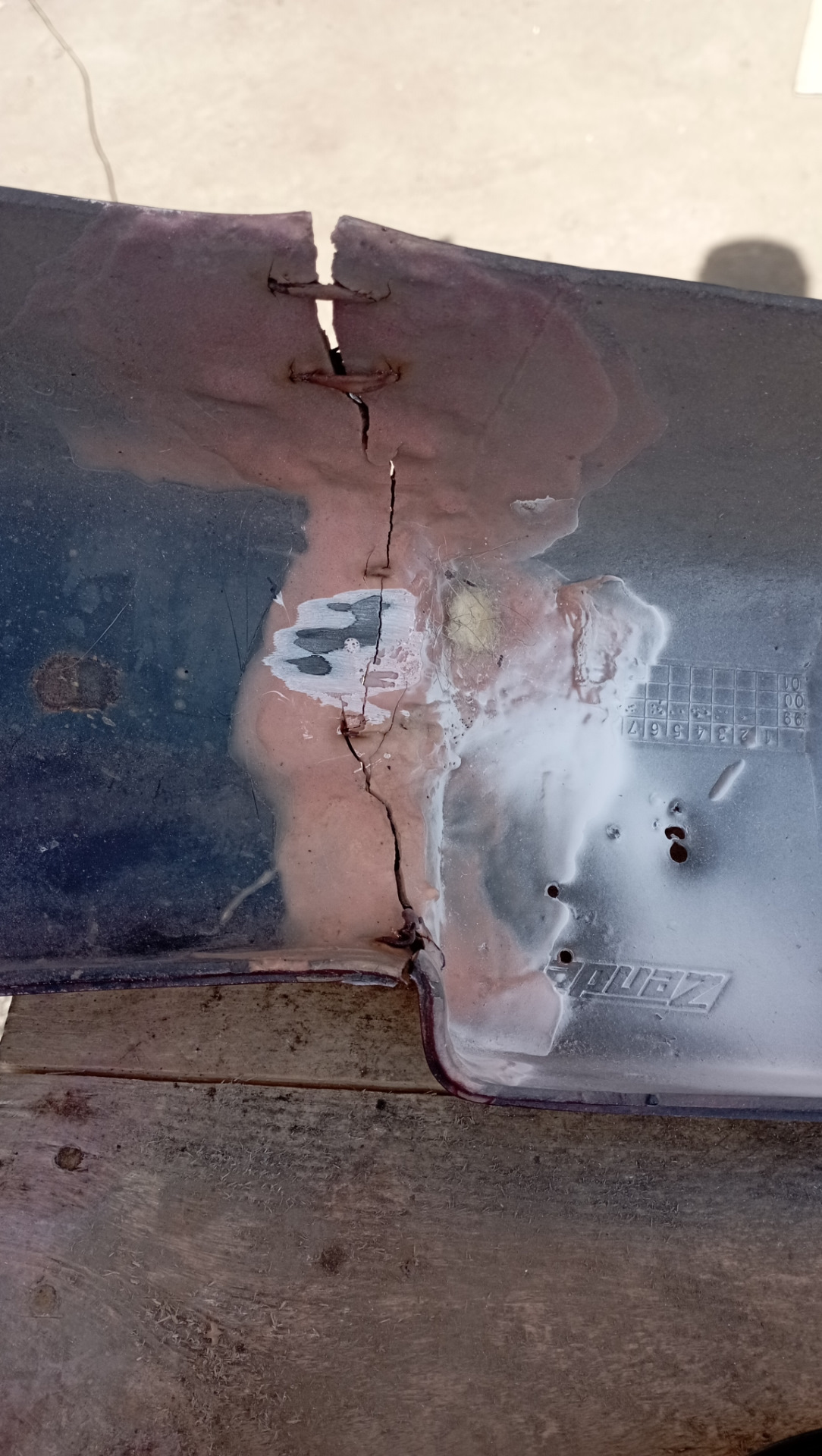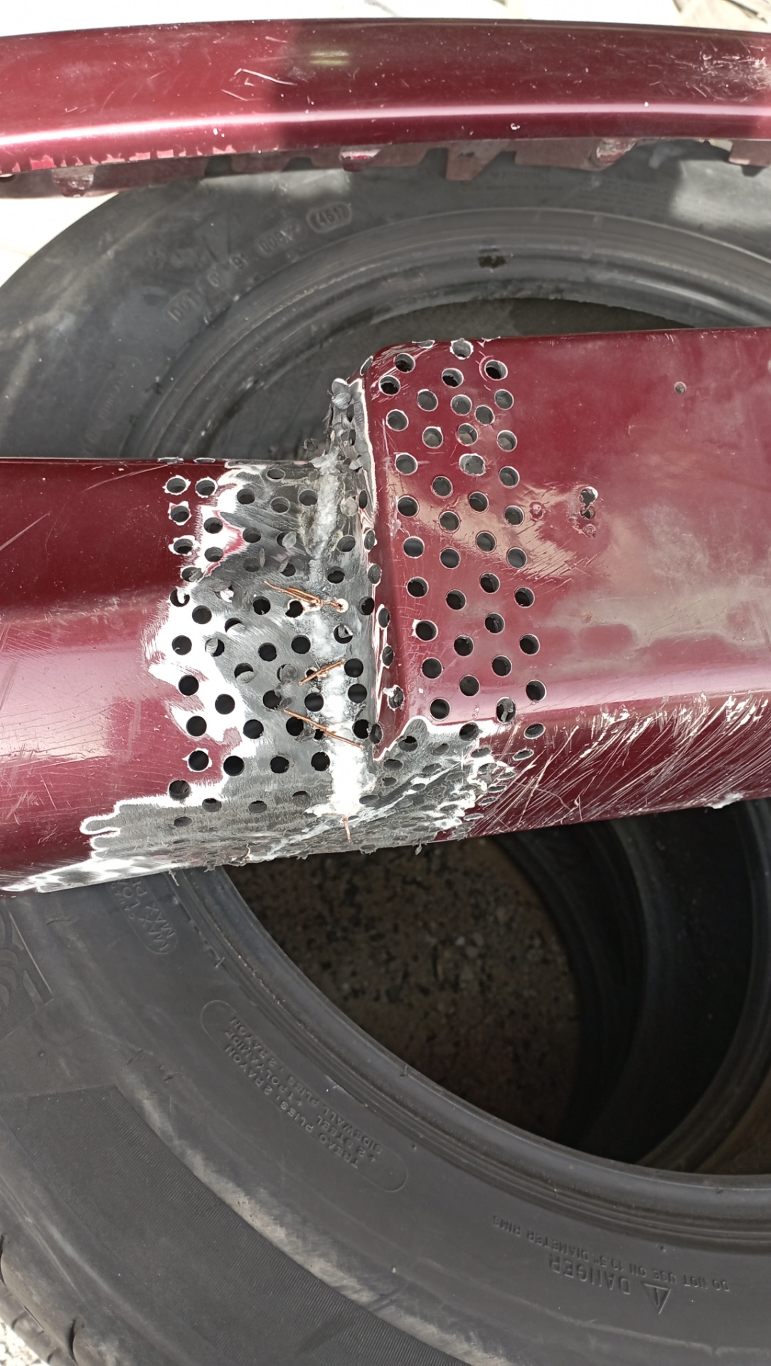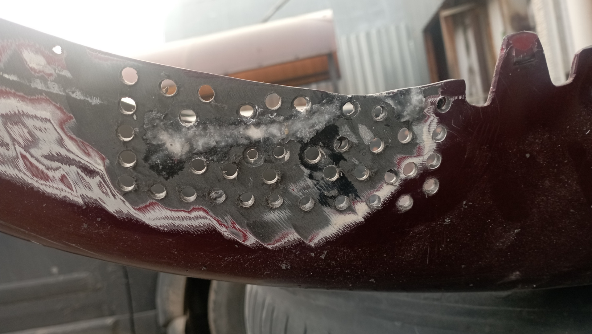К сожалению при первой же попытке заварить (запаять) трещину стало понятно, что по данной технологии этот бампер восстановить не получится. На самом деле все эти старые, мелкосерийные бампера редко паяются и надежды сэкономить кучу времени и обойтись без танцев с бубнами, не оправдались. Ох, если бы я знал сколько времени уйдёт на этот бампер, то сразу бы отказался от этой затеи, но тогда я решил продолжать, так как было потрачено много времени и средств на поиск этих бамперов. Оставался быстрый способ ремонта при помощи железок и клепок, или же более надежный, но очень долгий, при помощи смолы и стеклоткани. Конечно же я выбрал второй 😖😖😖.