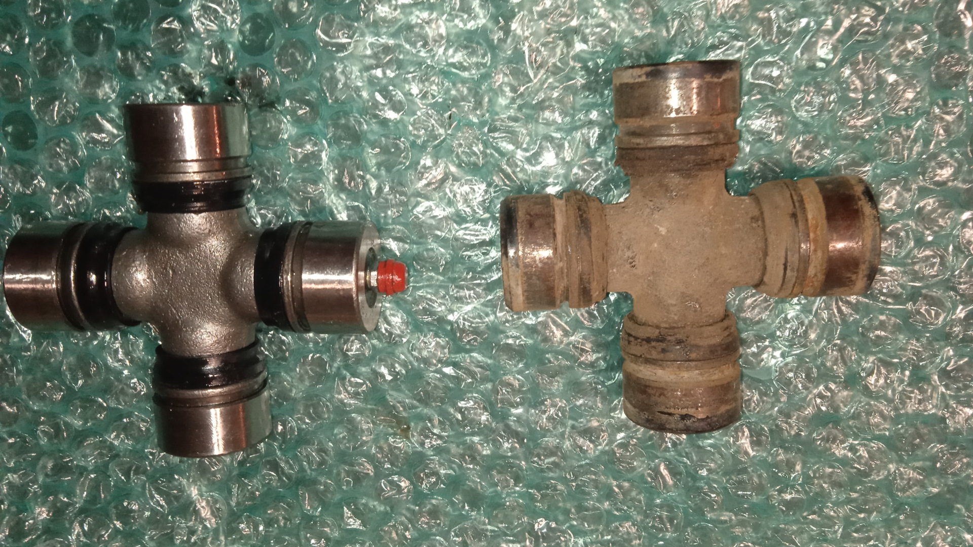 Они были настолько в хорошем состоянии, что при вращении колпачков игольчатые подшипники вибрировали в руках. Смазка там условно когда-то была. Во всяком случае сухая черная полузасохшая срань присутствовала. Сальники труха. Такими оказались обе по состоянию. Удивление вызывает пробег этих крестовин всего в 6500 км. Производитель НОУ НЕЙМ, естественно рискну предположить, что сделано в подворотне.