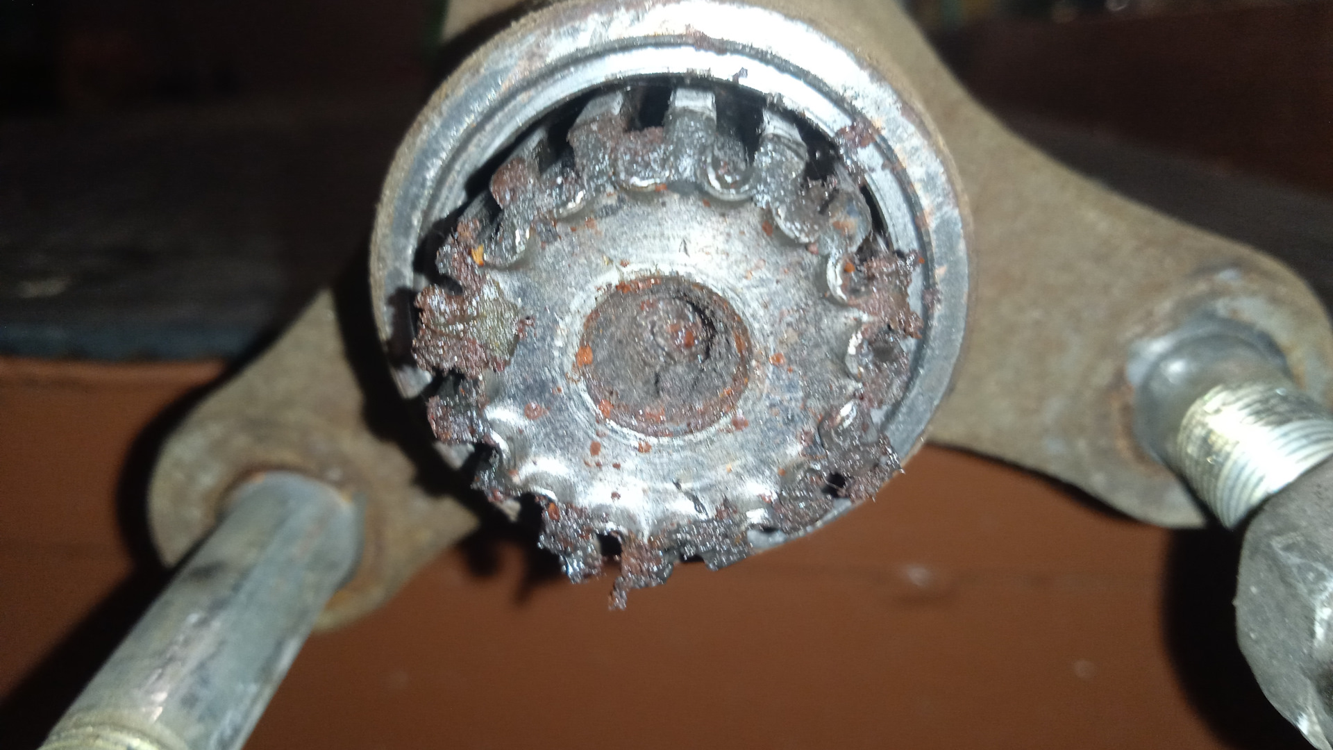 Сняв крестовины, которые в моей сборке кардана оказались двумя Москвичевскими, то картина не порадовала.