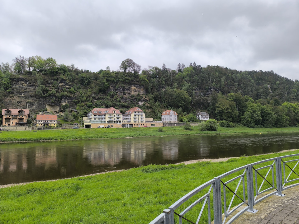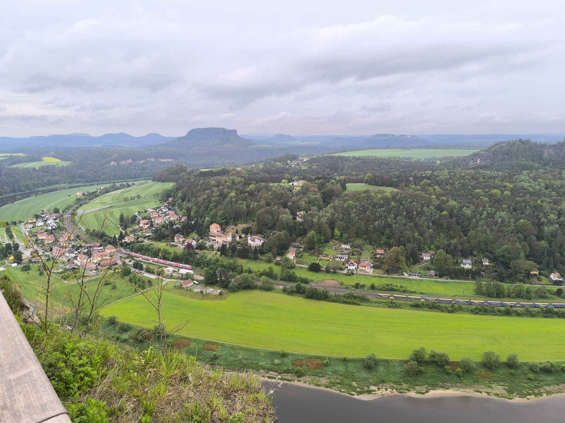 Вид снизу, 32 минуты на объезд. Хотели подобраться к Кёнингштайну, но сфотографировали его только со стороны, зато проезжали офигительные деревушки с узкими улицами без тротуаров с 2-3 этажными каменными домами.