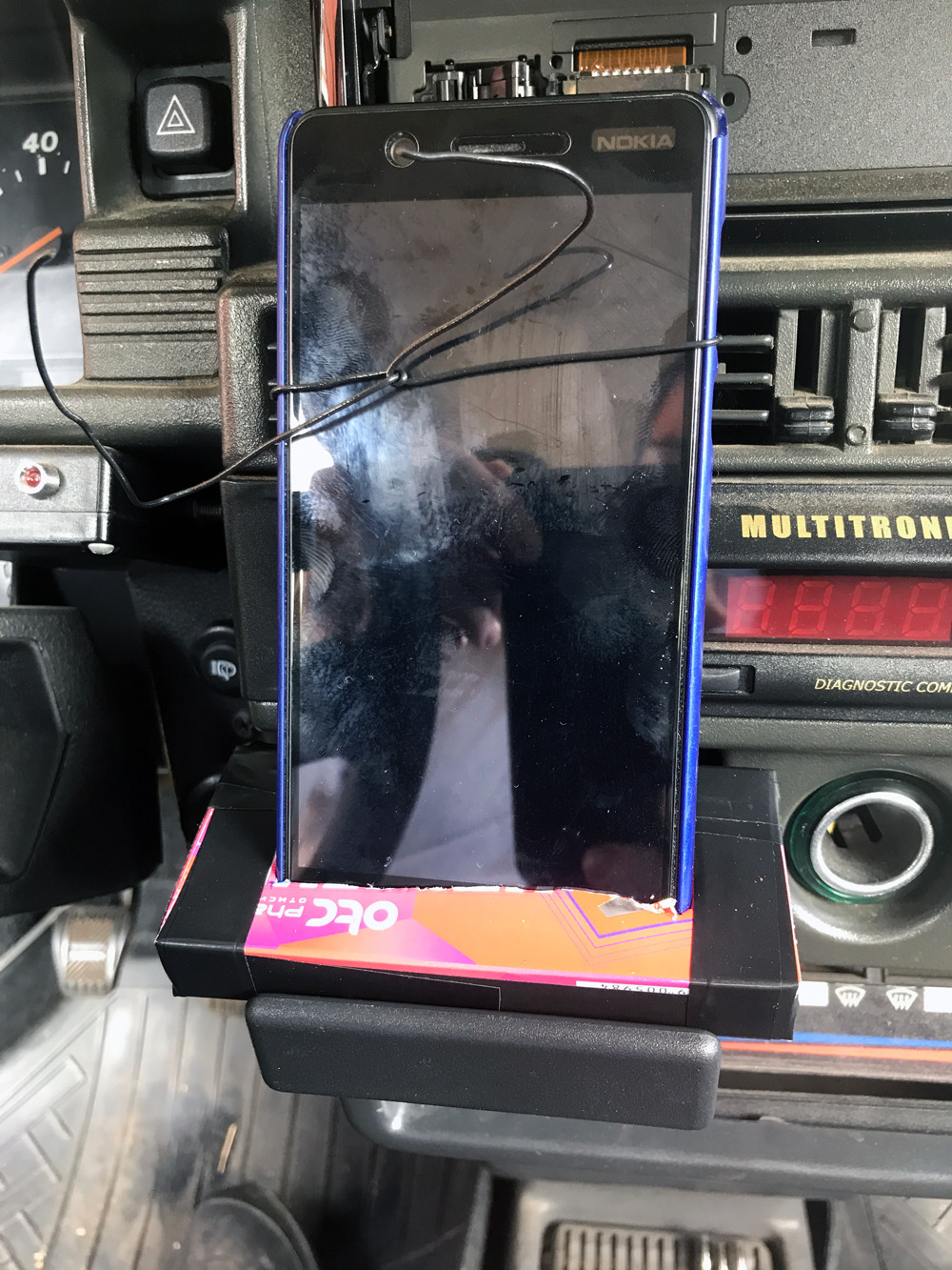Один раз прямо перед выездом за городом (магазинов рядом не было) сломал держатель, а ехать надо было 100 км. Сварганил из коробочки от лекарств, привязав её изолентой к пепельнице )))) Так потом больше месяца катался.