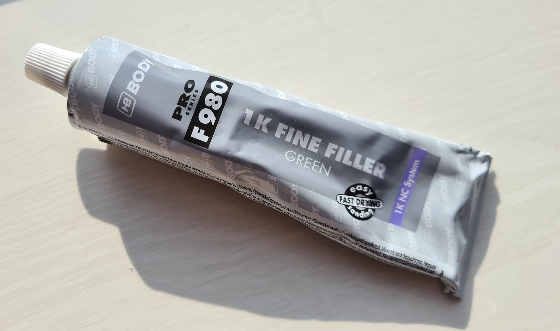 Принципиально не хотел мучаться с отвердителем и прочими прелестями "настоящей" шпакли. А эту из тюбика выдавил, нанёс, она высохла, можно шлифовать. Вот только сохнет она очень быстро, имейте ввиду, вдруг кто-то захочет приобрести. Но для локальных ремонтов, это даже плюс, наверное…