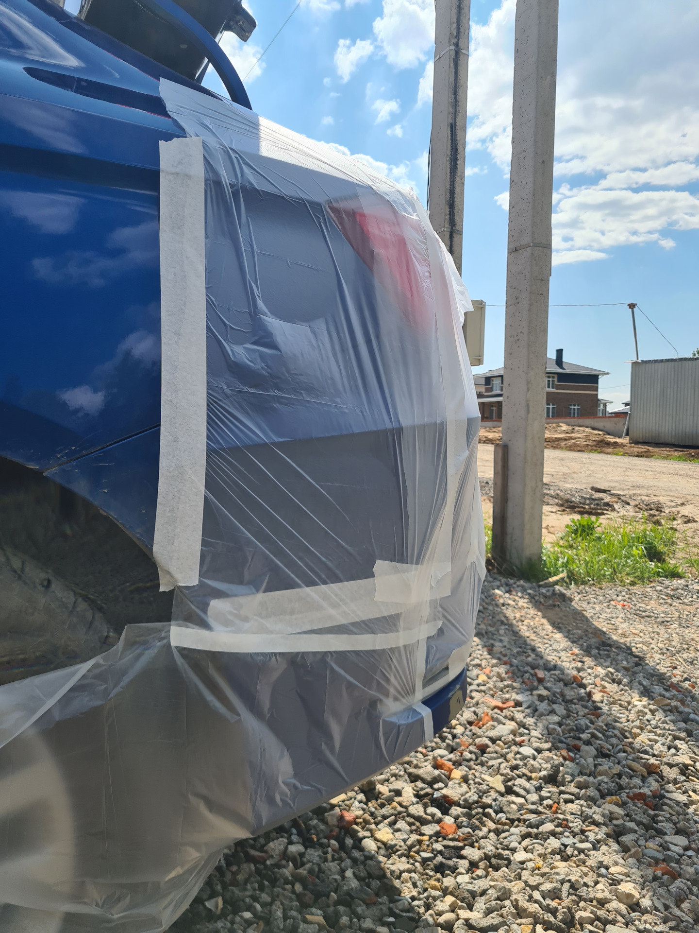 Практически молился, чтобы ветром на улице не принесло на свежую краску какой-нибудь песок, но, вроде, обошлось. По итогу имеем не идеальный, но все же, отремонтированный бампер, уж лучше, чем с трещиной ездить)