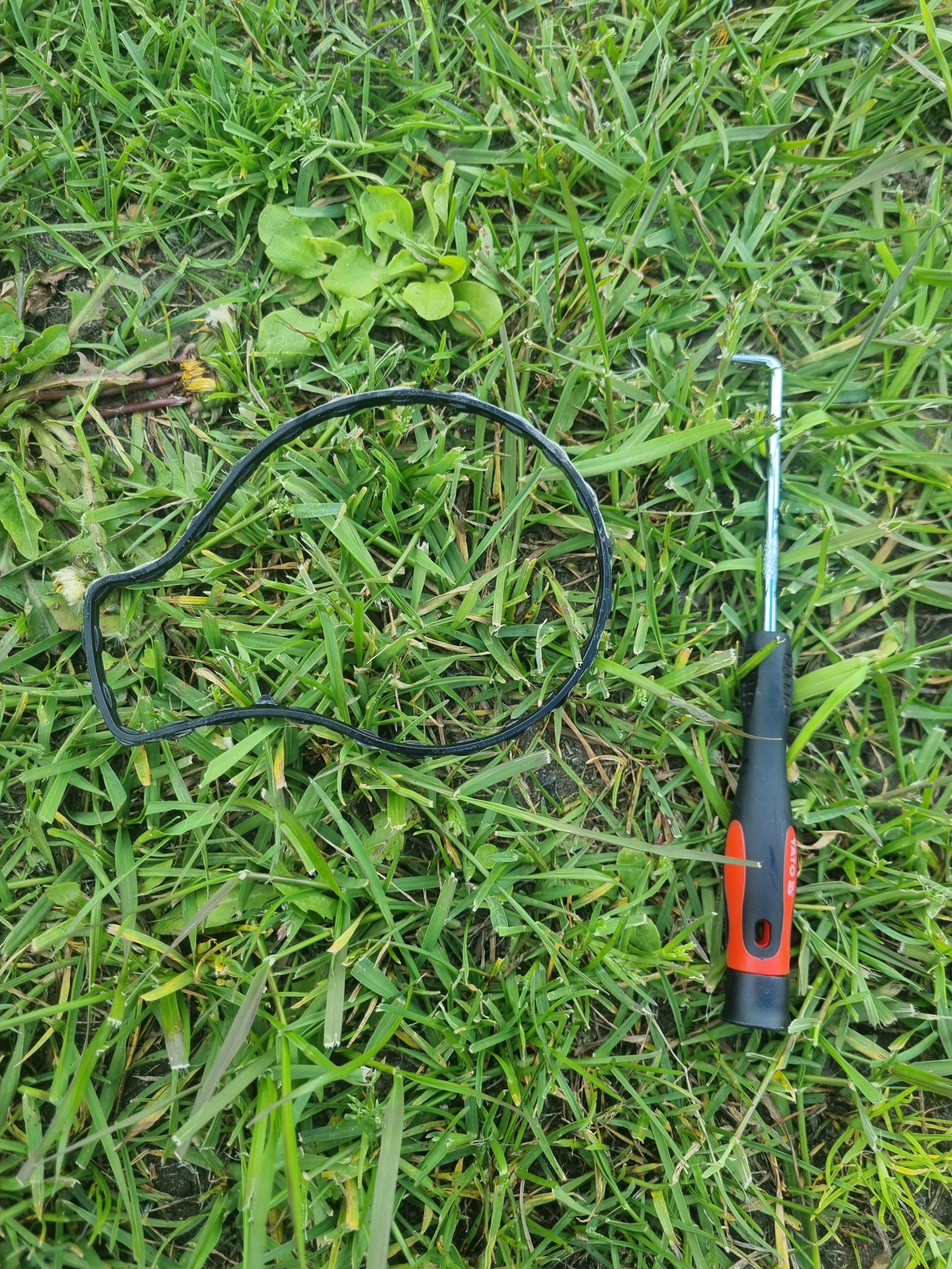 Когда открутилась помпа вылилось грамм 20 антифриза. Затем извлекаем старую прокладку в этом мне помог слесарный крючок, думаю и плоской отверткой можно подковырнуть.
