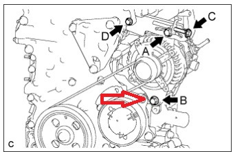 В техдоке момент затяжки нижнего болта генератора указан как 43 N*m с учетом того что машине 14 лет и отсутствуют поврежденных граней болтов стало понятно что туда никто до меня не лазил. Принято решение применять составной удлиненный вороток примерно см.80 с головкой на 14. Сорвали успешно.