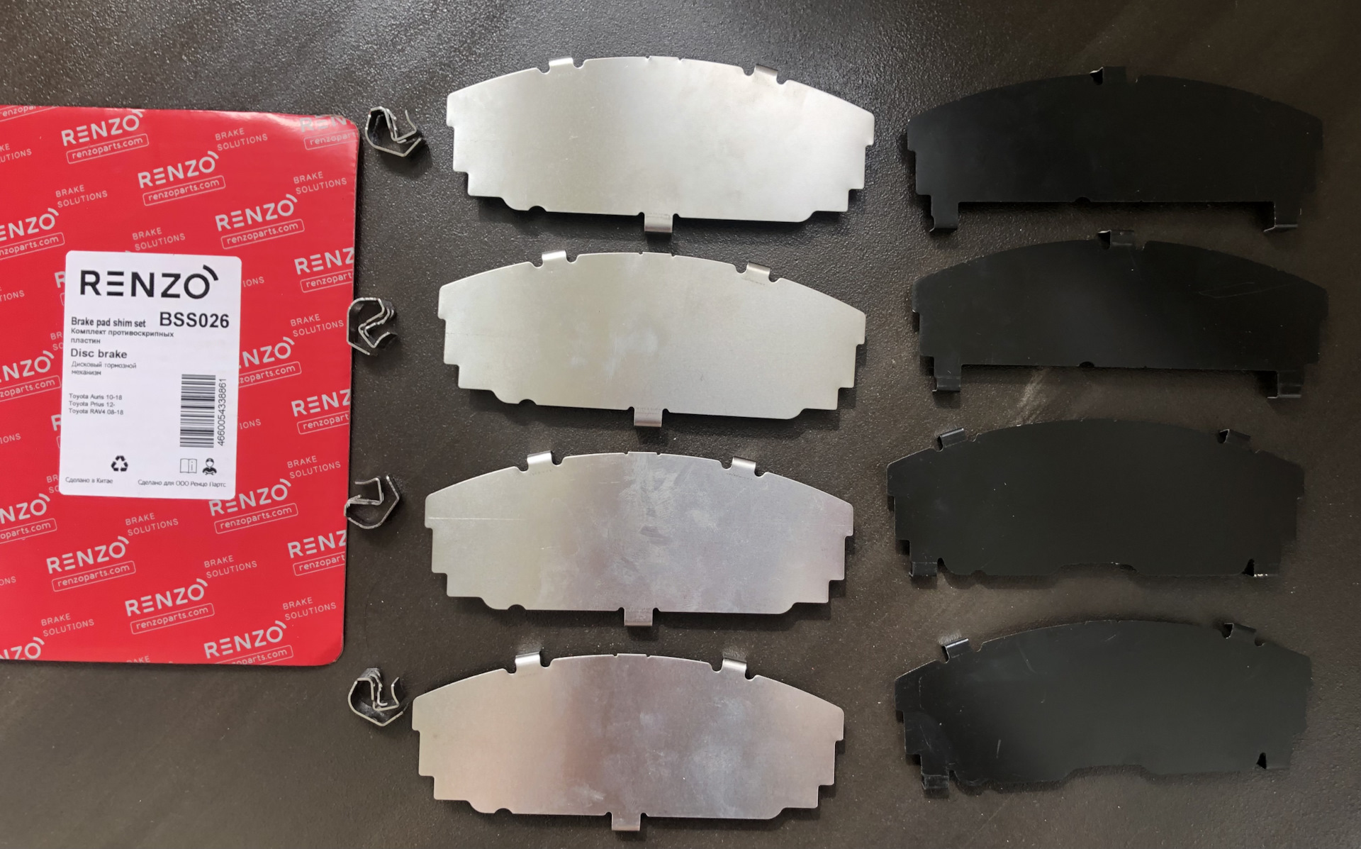 — противоскрипные пластины и пружинки Renzo перед/зад (ссылка на обзор);
