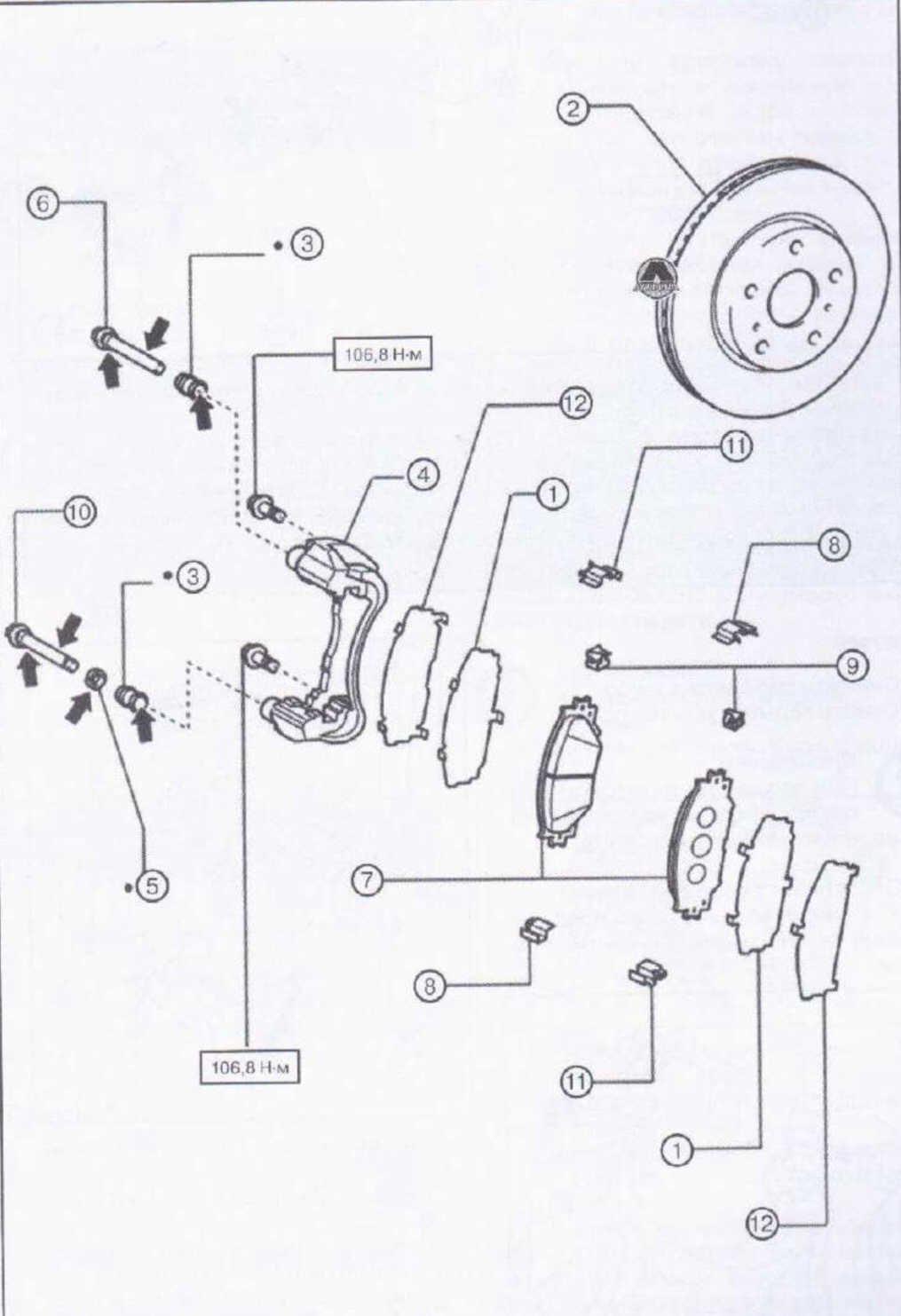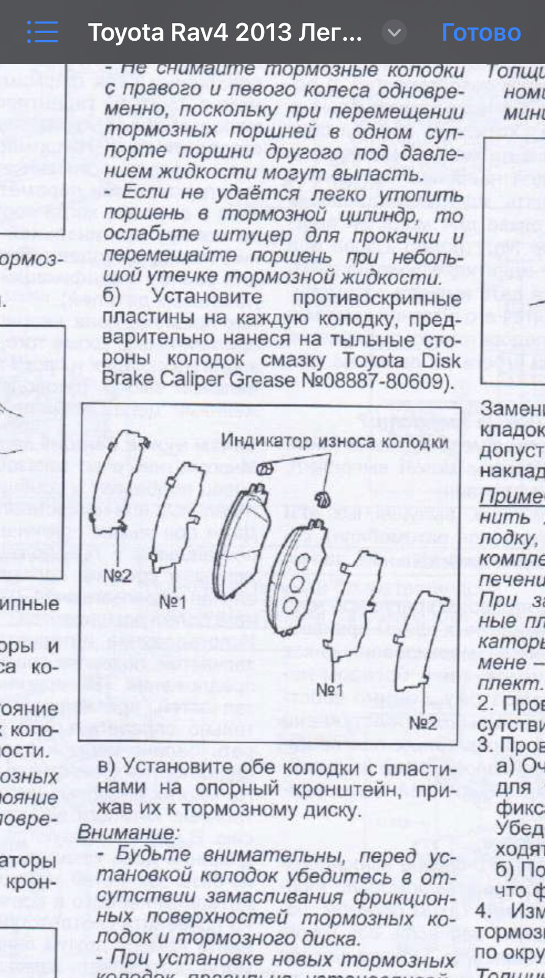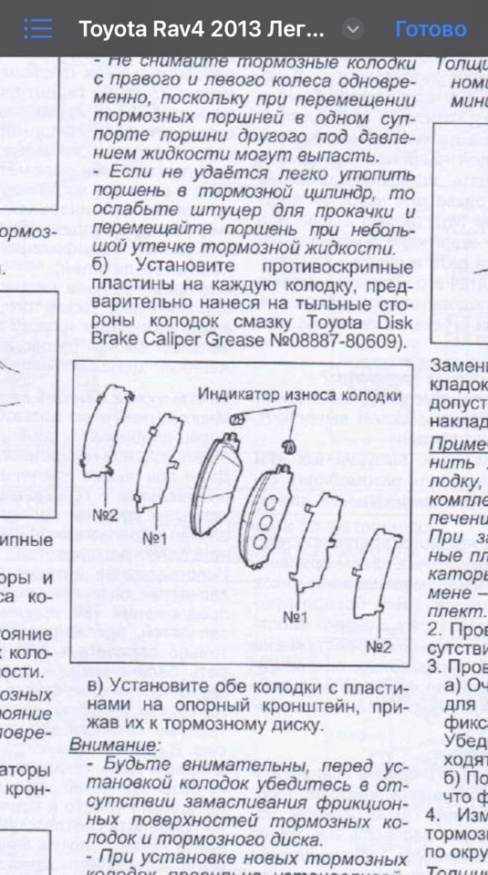 Тот, который у меня установлен правильно. И конечно же смазано между колодкой и пластиной и между пластиной и пластиной. Вот схема из еще одного мануала по Rav4.