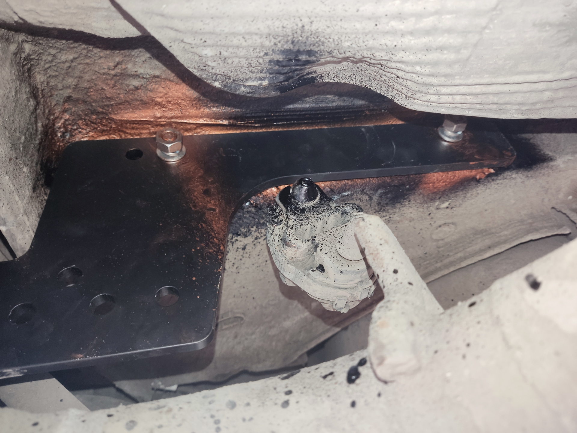 Далее, со стороны багажника вставляем болты, ОБЯЗАТЕЛЬНО устанавливаем распорные втулки, иначе при затяжке болтов лонжероны просто деформирует, со стороны днища ставим кронштейны фаркопа, надеваем гроверные шайбы и наживляем гайки. Крайне желательно, чтобы помощник со стороны багажника придерживал болты от выпадания. Затягивать гайки нужно после установки самого фаркопа.