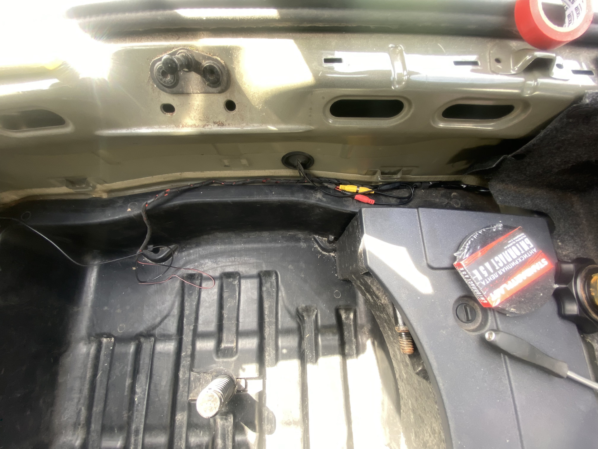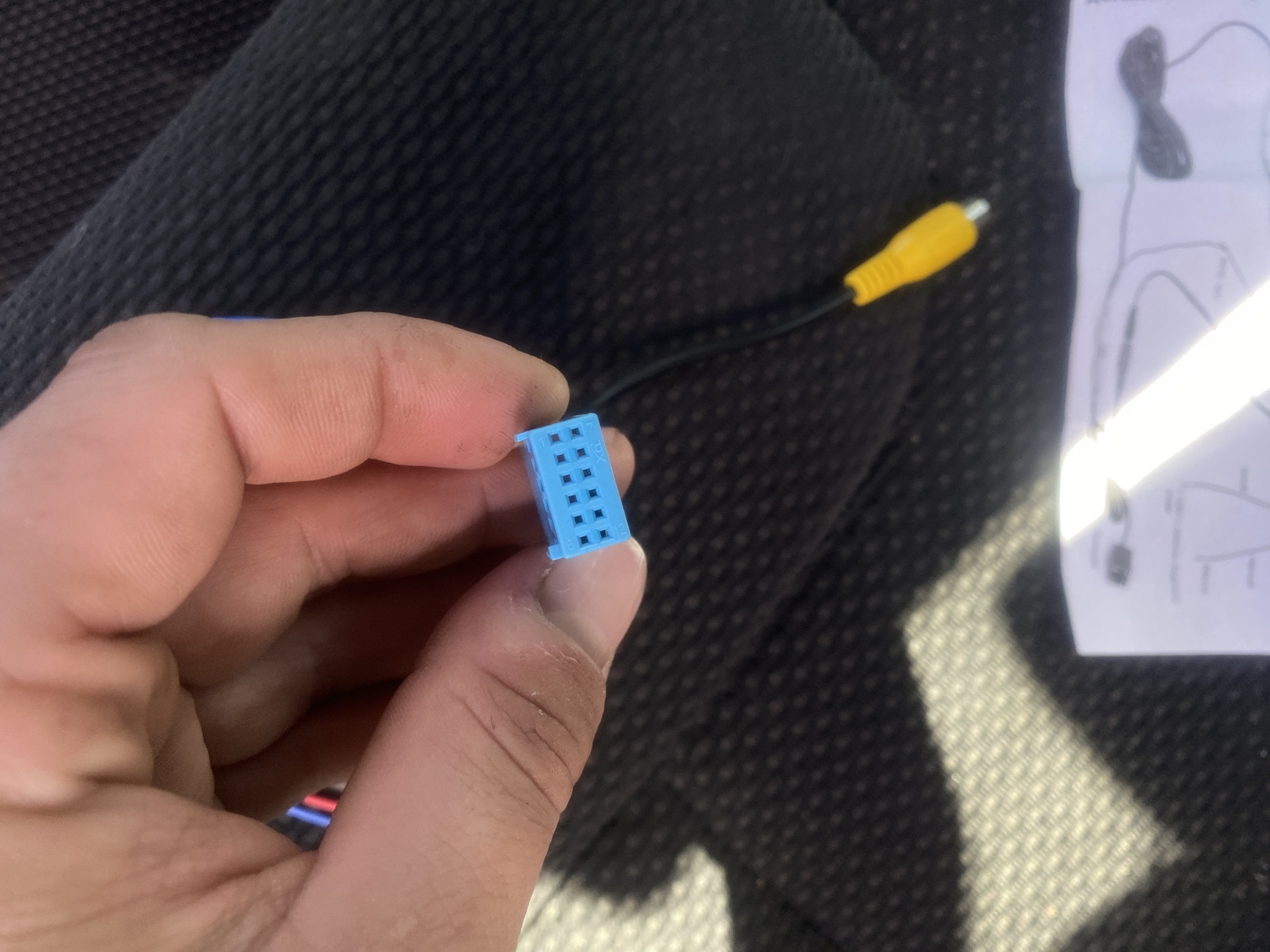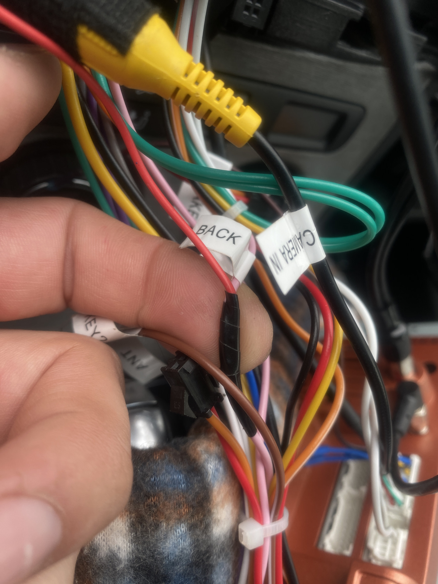 Красный провод питания подсоединил к проводу BACK, через который подается сигнал через CANBUS, а тюльпан подсоединил к выводу CAMERA IN на магнитоле.