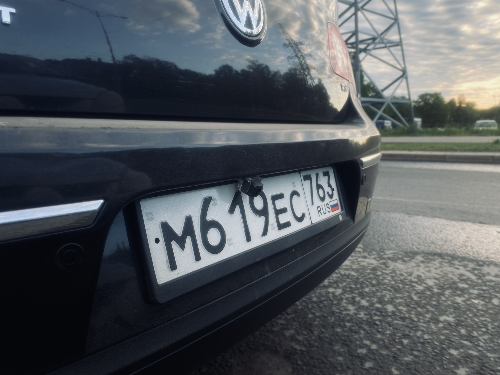 Одна из проблем, с которой я столкнулся во время владения Passat-ом, это была проблема с парковкой. Так как машина имеет большие габариты, не учитывая что уже имеются задние парктроники, мне остро не хватало камеры заднего вида. Поэтому принял ВРЕМЕННОЕ решение установить камеру заднего вида в плафон подсветки номера пока не куплю камеру зв в эмблему Volkswagen.