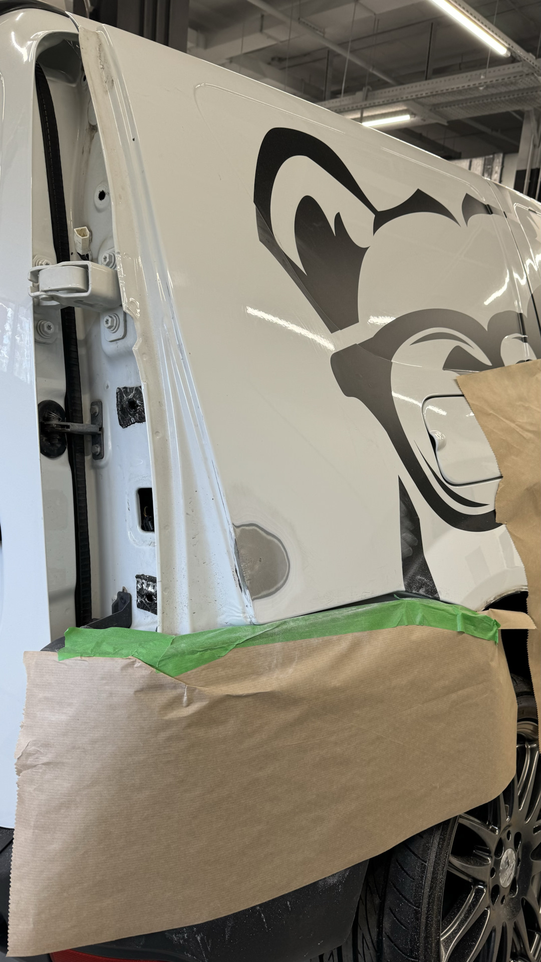 Ну и раз машина в малярке, решено убрать вмятину с заднего правого крыла. Оказалось что на машине уже несколько слоев краски… И это при условии что я ее покупал новой и в малярке она первый раз за 11 лет :) Видимо так самые первые партии машин красили. Заднее правое крыло решено покрасить целиком.