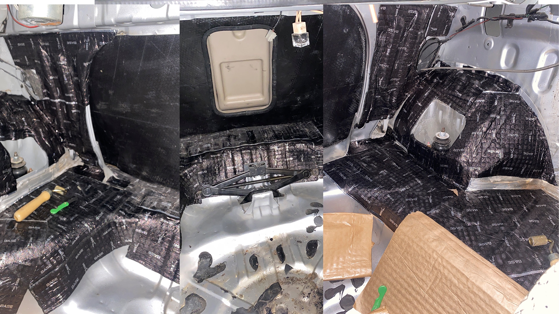 1. Одним прекрасным вечером я решил причесать багажное отделение. Зачистил все от штатной виброизоляции, зачистил рыжики, обработал грунтом по коррозии, очистил от грязи и обезжирил.
