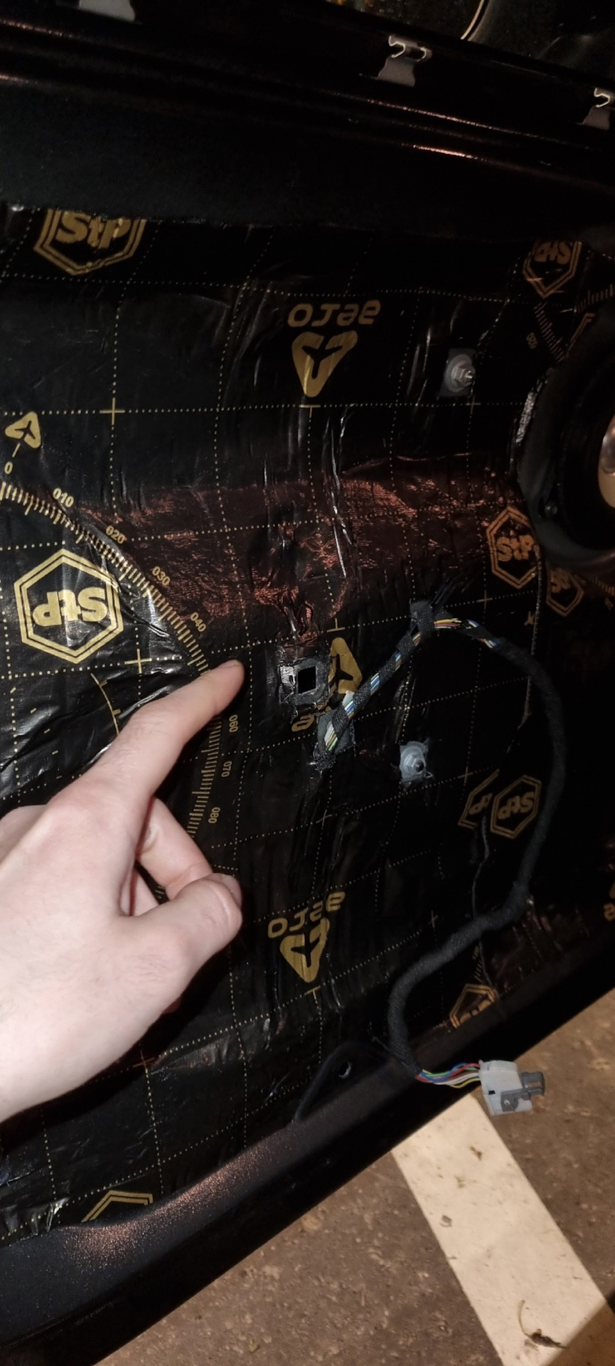Взял пластиковые лопатки и отправился с другом снимать обшивки. План был такой- после работы. Вечером, минут за 20, быстренько скинуть обшивки и поставить новые динамики на передние двери. А правый работающий переставить на заднюю левую.