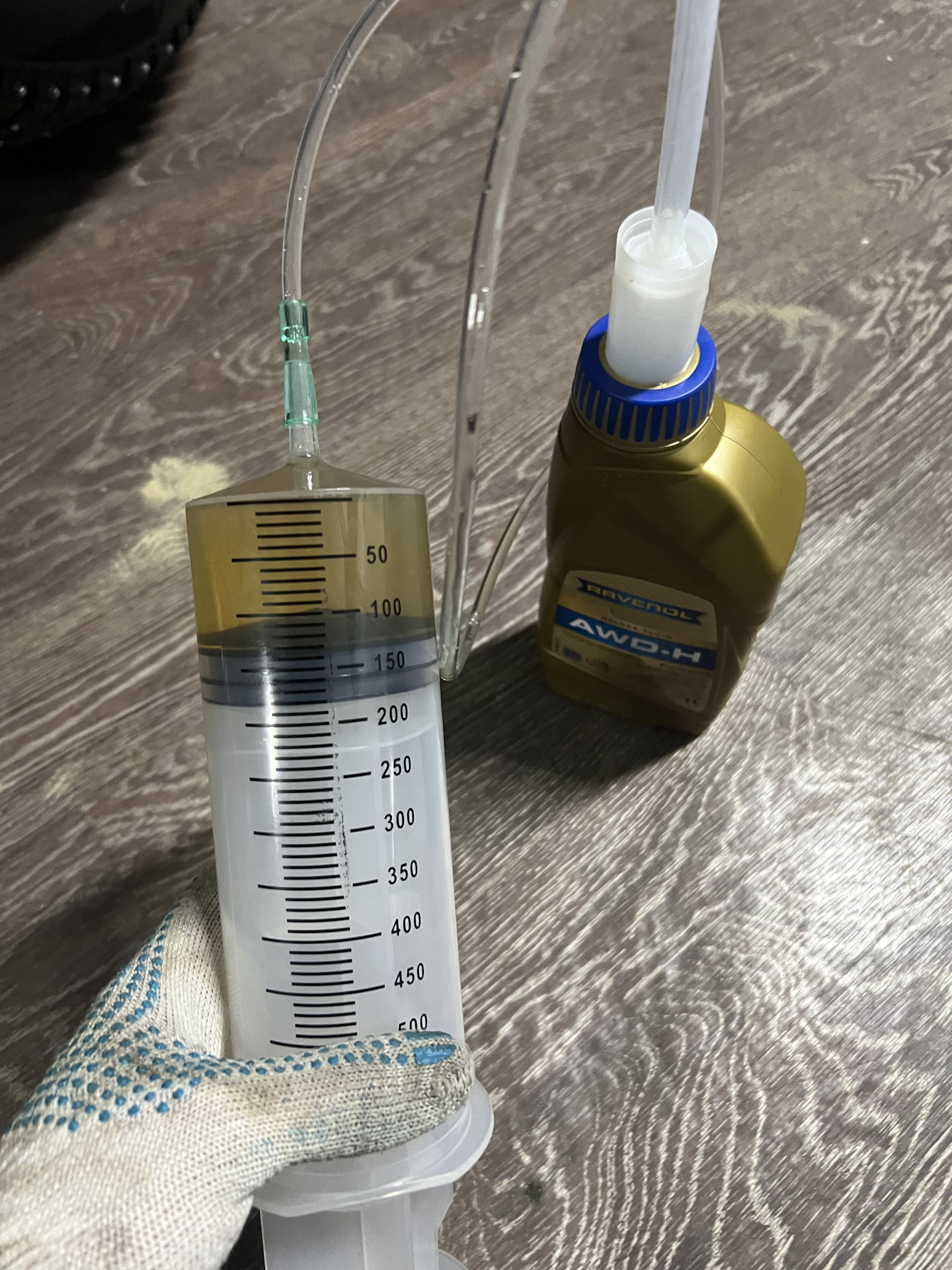 Само масло в муфте было чёрного цвета, его объем около 80мл. Залил 150мл.