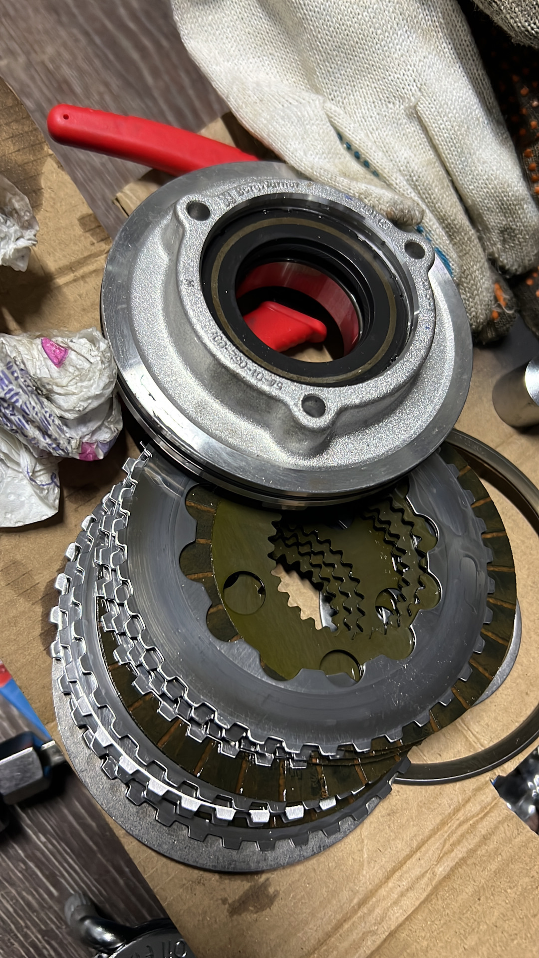 По разборке муфты тоже ничего сложного, вынимаем стопорное кольцо сальника, Далее стопорное кольцо крышки муфты, и не хитрым способом поддеваем крышку. Сборка обратной последовательности, я использовал щуп чтобы выпустить воздух между сальником и валом.