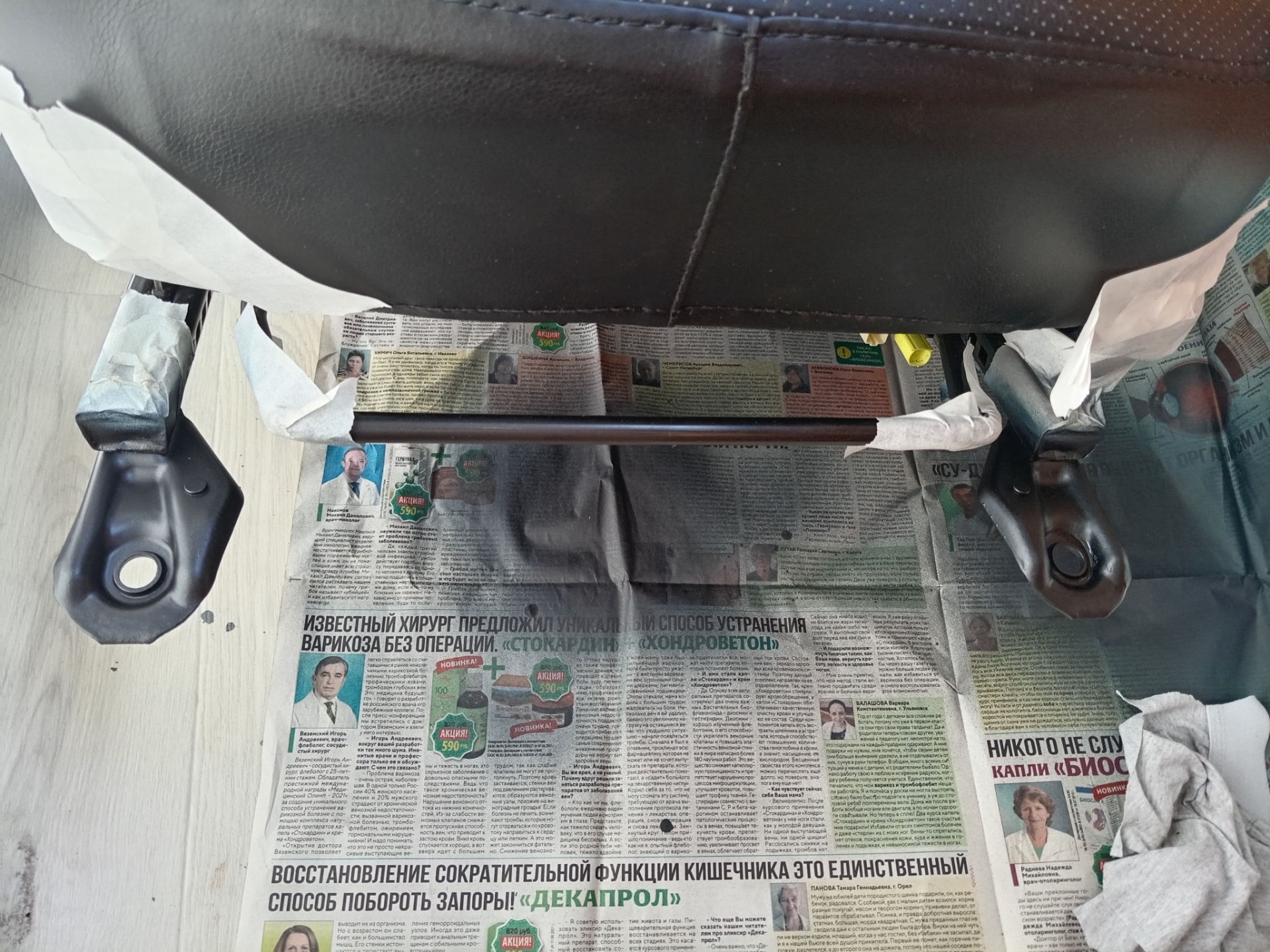 Освежил уши у кресел, приурочил процесс к замене чехлов, автопилотовские сдались после 5 лет эксплуатации.Делал по быстрому без соблюдений технологий, остатком черной краски с металликом из балончика, которым 5 лет назад делал опелю предпродажку), по хорошему только зачистил от ржи гравером.Получилось и так не плохо, будут закрыты накладками пост про которые выкладывал ранее.Короче еще одна сервиска в моем тойотовском сто пройдена.