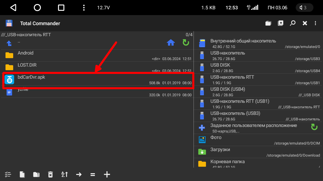 После установки видеорегистратора Srnubi, 1080P, Full HD ADAS с его внутренней памяти был установлен предзаписанный *.apk, для его работы в режиме видеорегистратора.