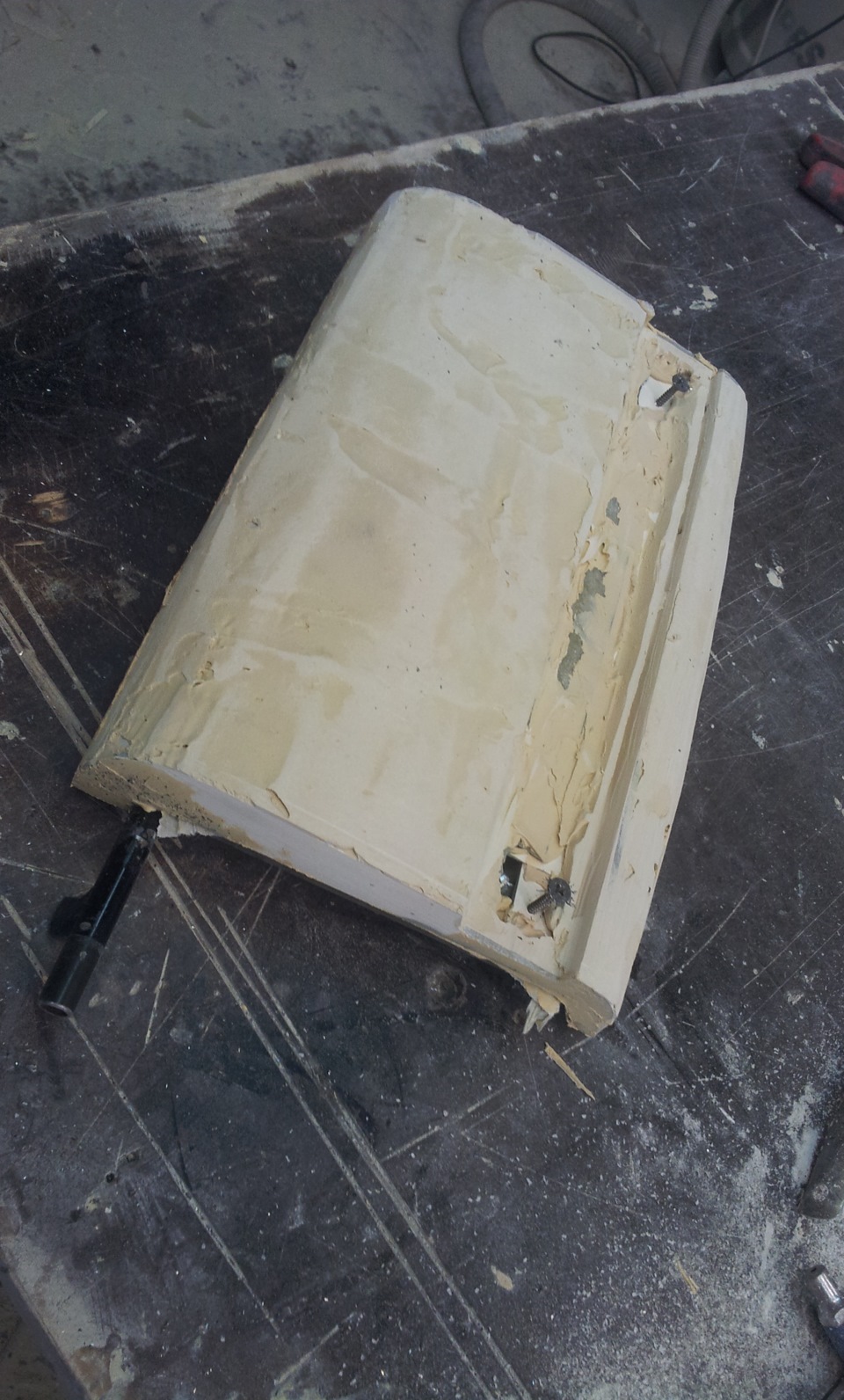 снимаем столик и подгоняем к металлу углубление под стакан.