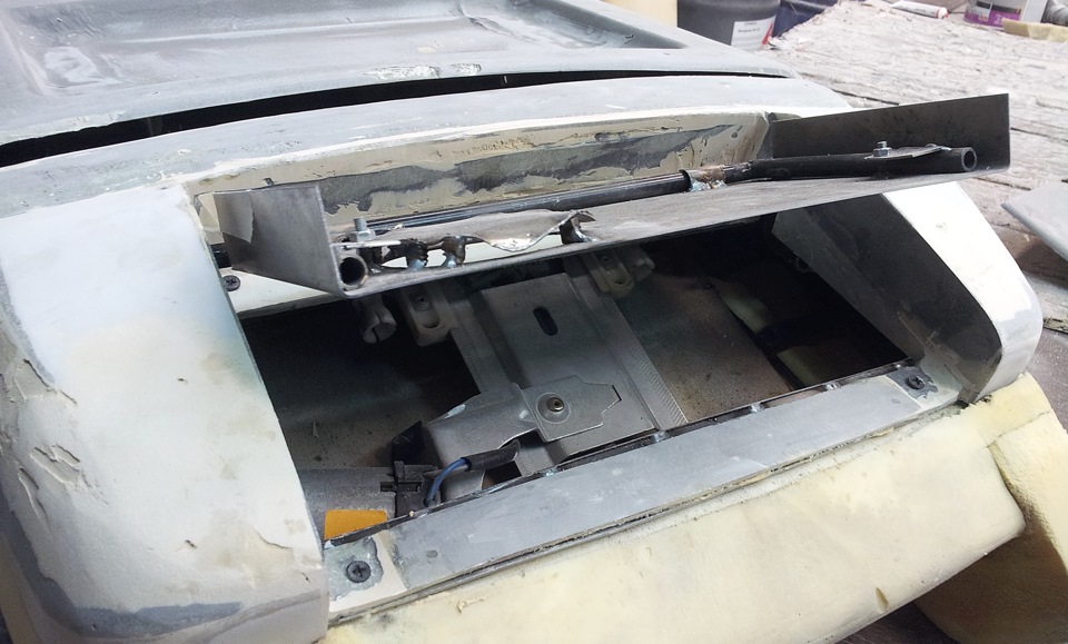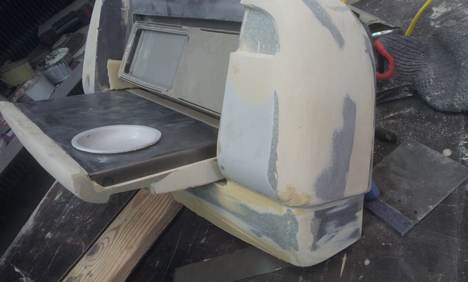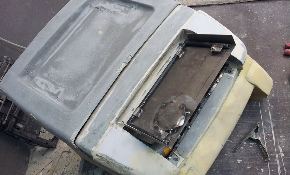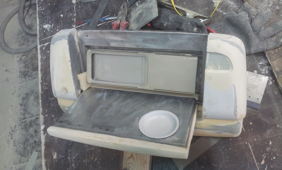 Столик будет комбинированным. Металл+ стеклопластик. К металлу очень легко приделать "намертво" крепежи, а стеклопластик — уже для дизайна. Вот такая лицевая часть стола.