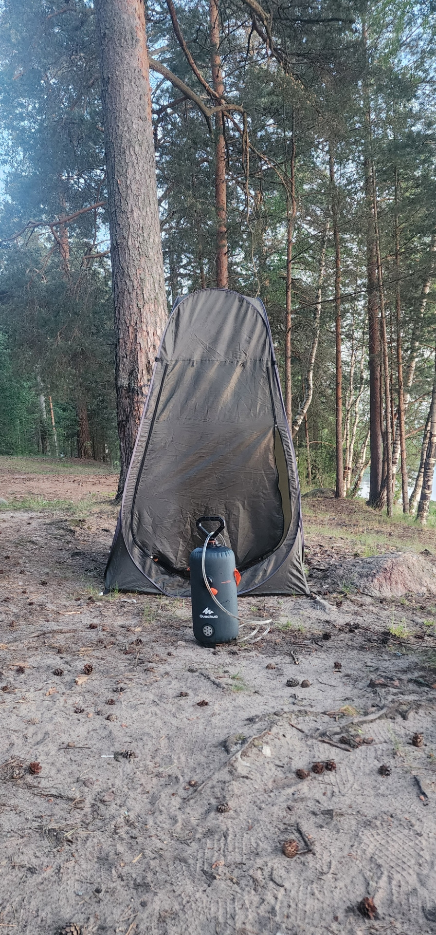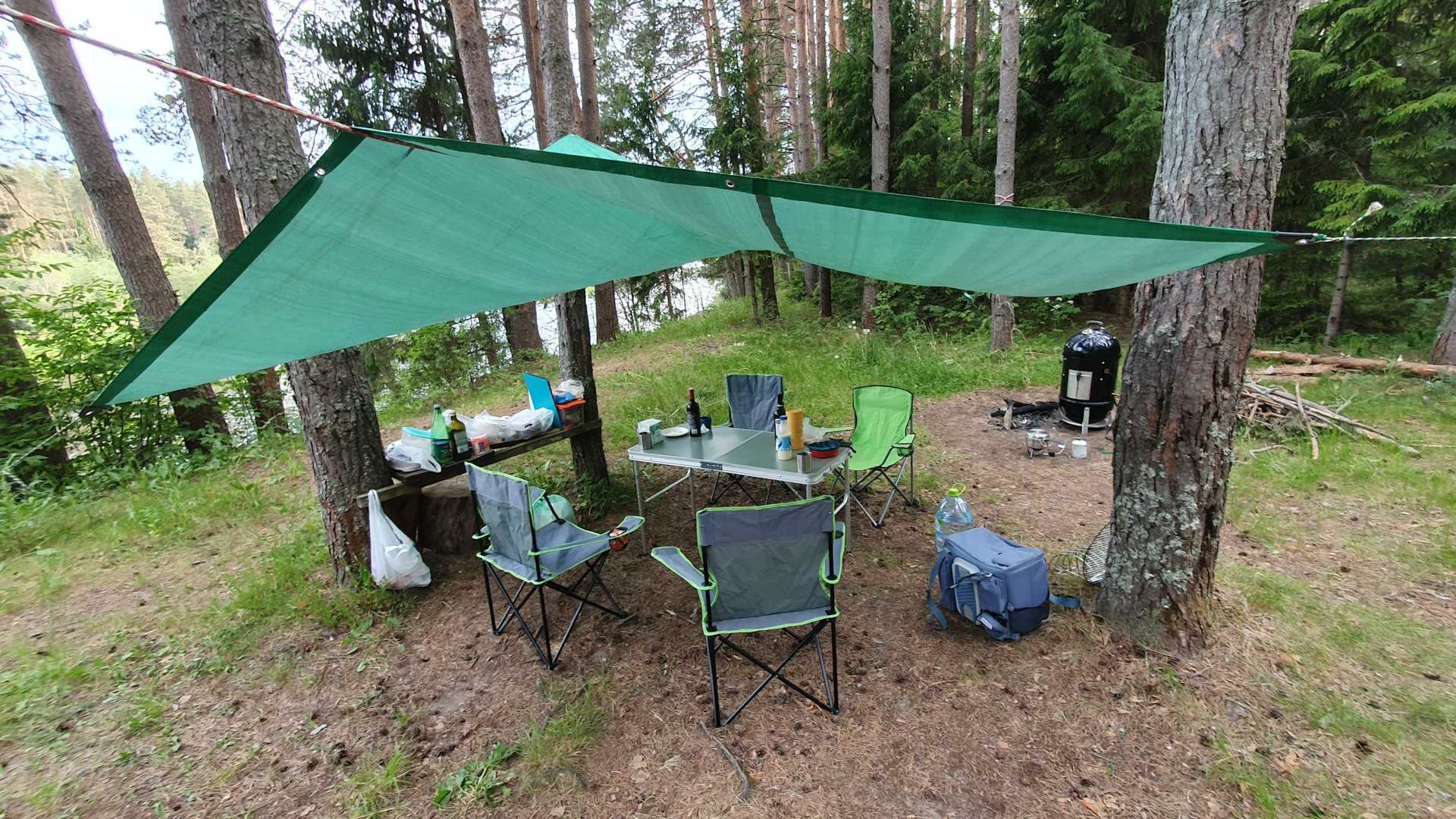 Растянули маркизу. Накрыли стол. Отдых начался. Решил немного порыбачить. Соорудил из фидера закидушку, без кормушки и пр…, насадил опарыша, и стал ждать…)