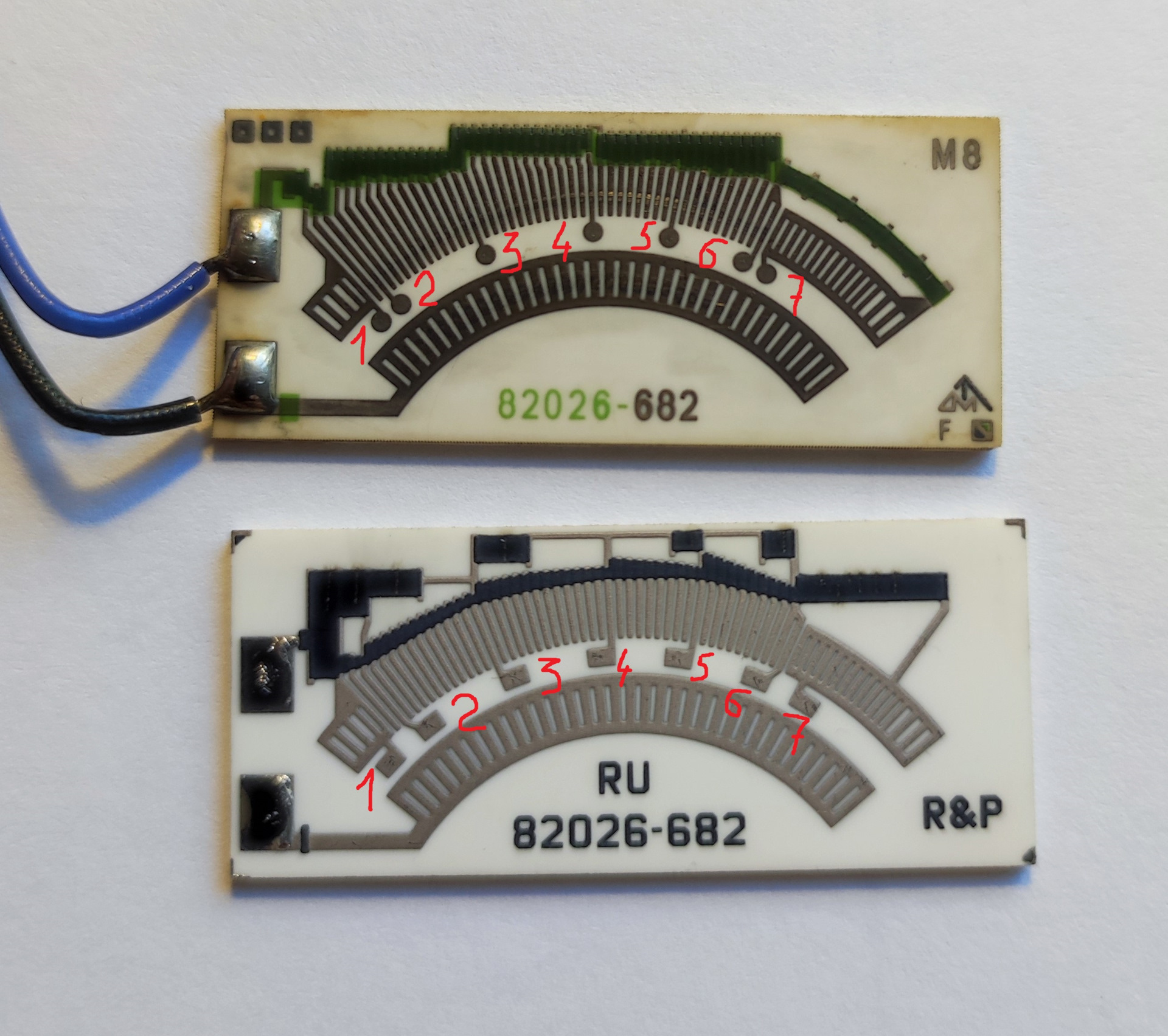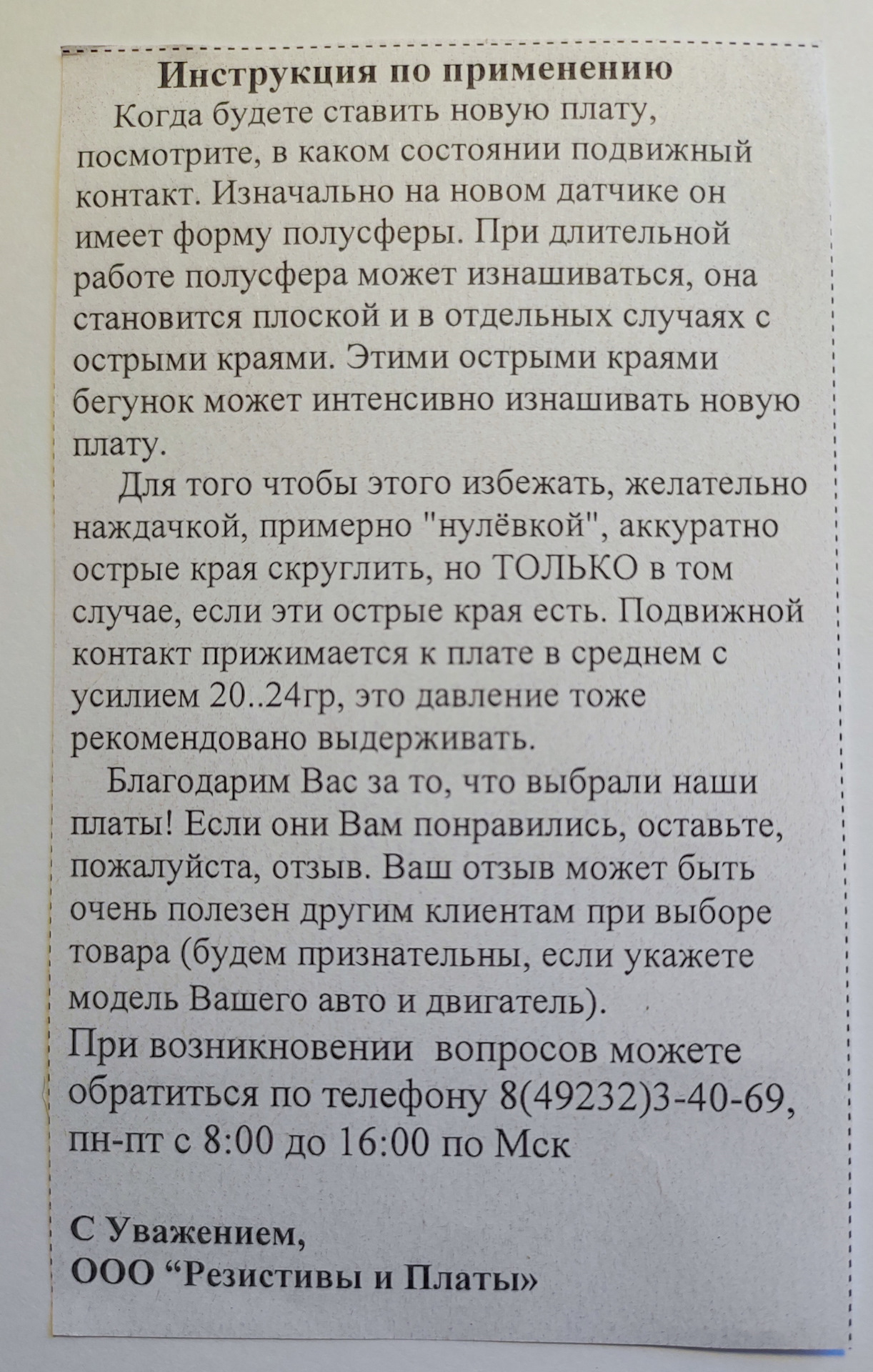 Далее есть интересный момент с бегунками. Понятно, что за столько лет они тоже стерлись и пятно контакта стало больше, а так же могут быть острые края. Вот об этом я и сам подумал, но парни, которые делаю эти датчики прямо об этом и пишут. Причем это дельный совет.