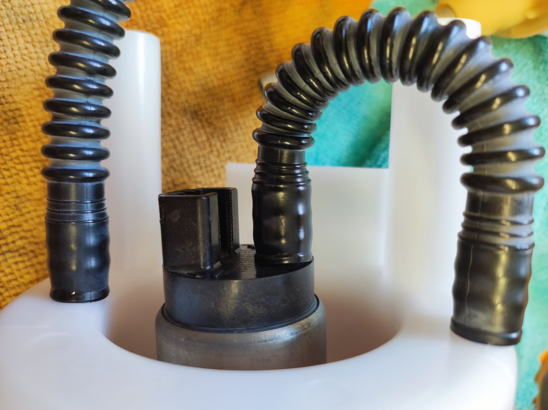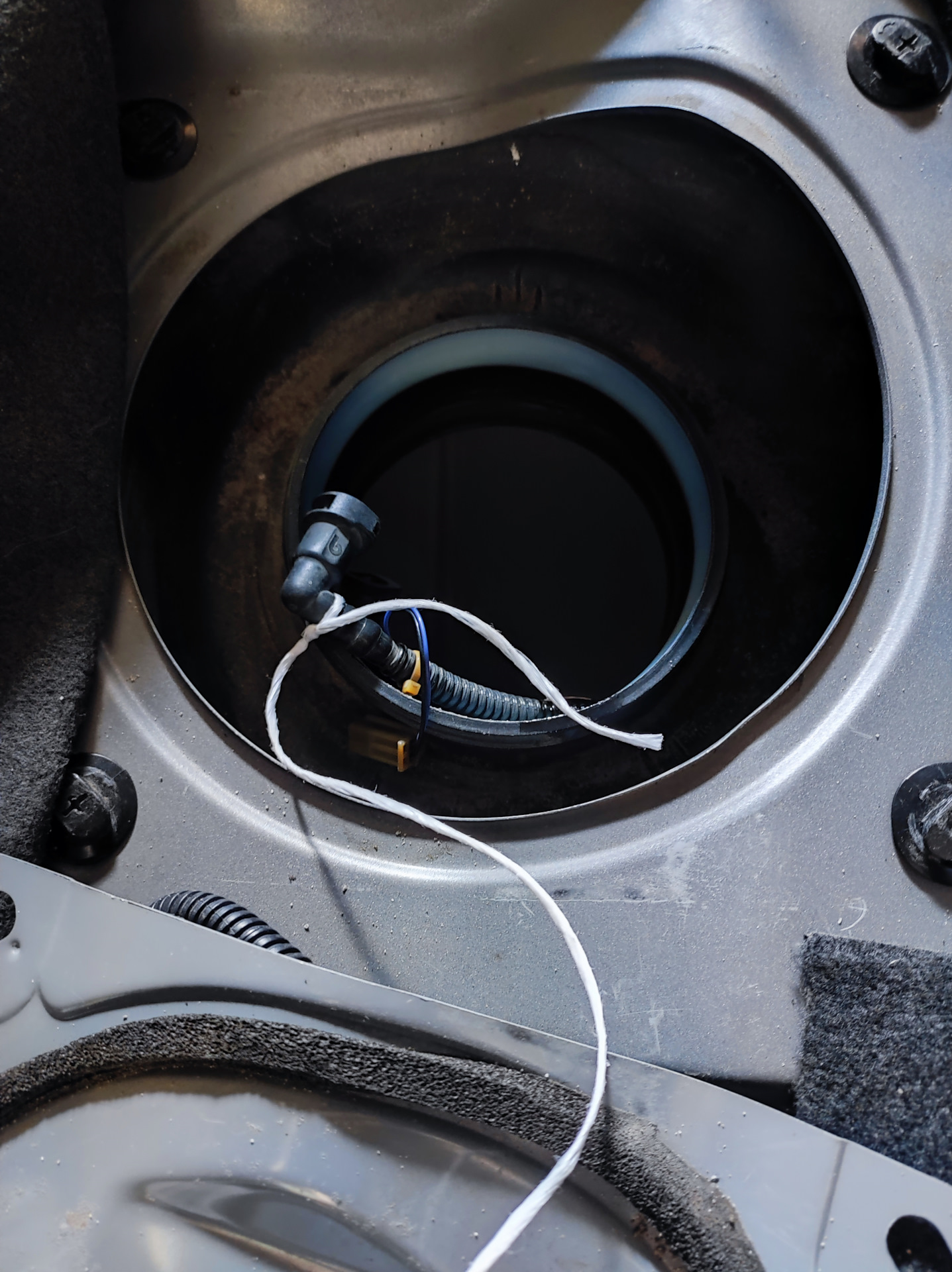 Пытаемся все собрать на место, но т.к. вчера залил полный бак))) это непросто)), особенно не хотелось лезть по локти в бензин, чтобы просунуть шланг от перекачивающей станции. Хотя какая это нафиг станция)), так, трубка просто. Поэтому привязываем веревочку, вытаскиваем этот голый модуль)), , а при установке тянем назад за ниточку))) и все отлично получается. В бензине не купаемся)).