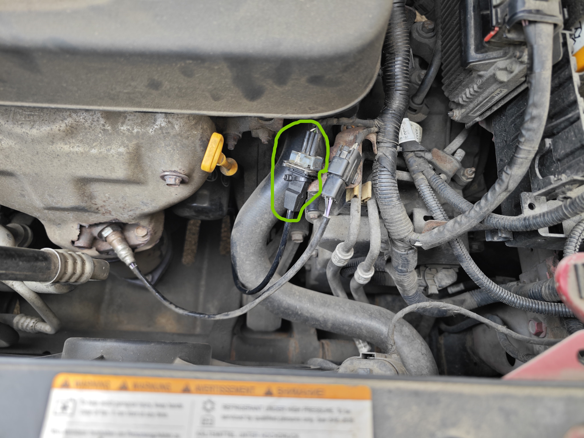 Нам нужна фишка, провод от которой уходит вниз под масляный фильтр.