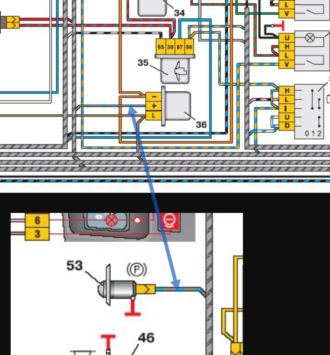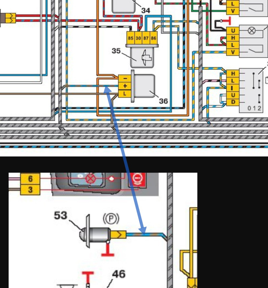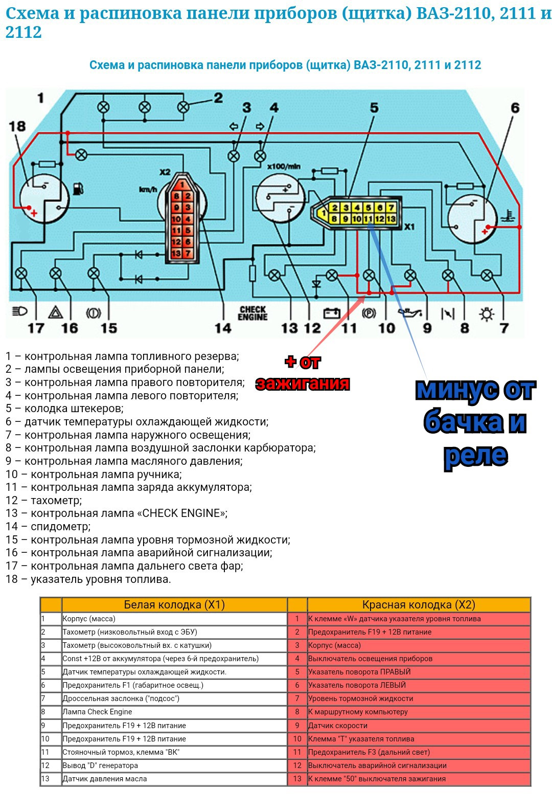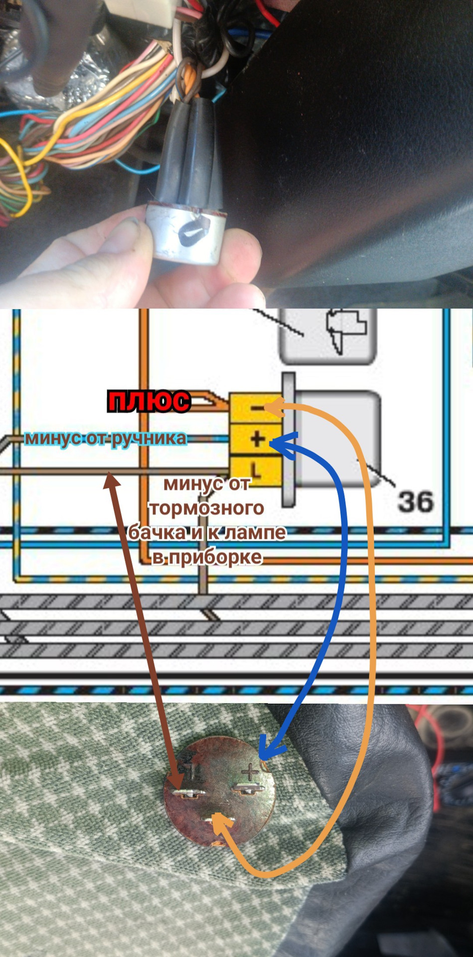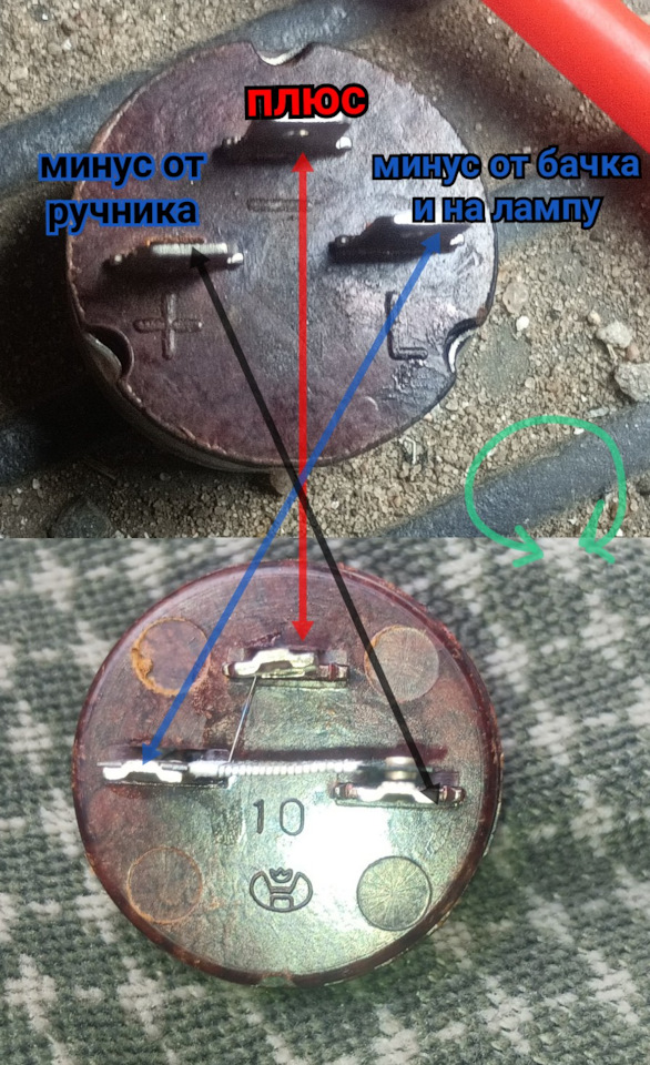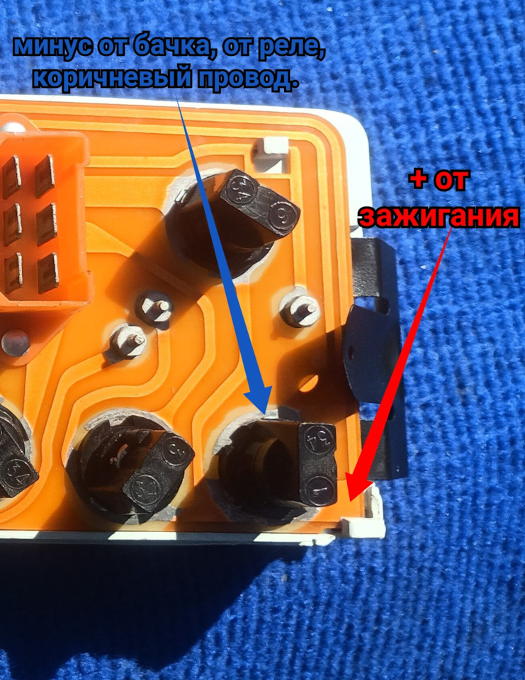 Второй плюс, на коричневых, это через лампу в приборке приходит, если не замкнутый контакты в бачке.