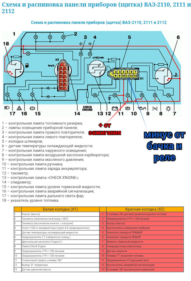 могла дорожка плюса от зажег на плате навернуться( только у меня приборка десятошная.попробую проветь на самой приборке + и — спасибо!)