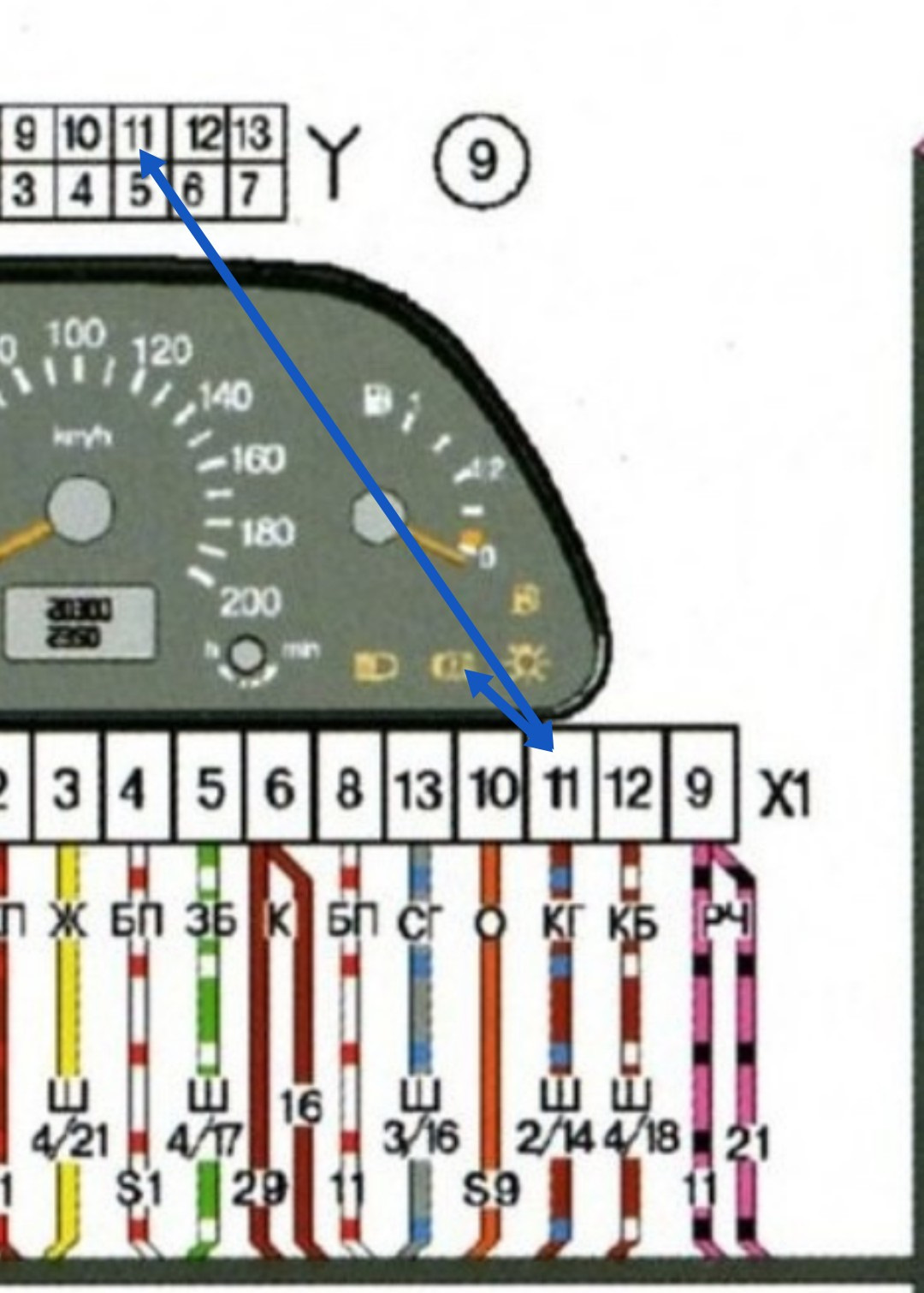 Если верить той схеме, что выше, то 11 на белом разъёме.