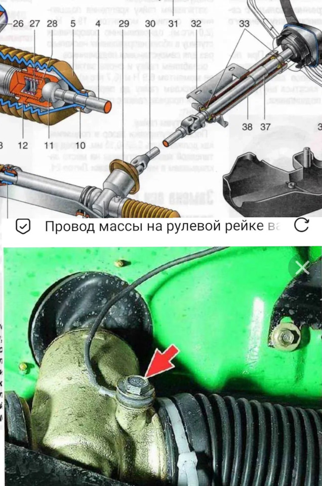 спасибо! глянул, правда нет массы. даже провода нет, и даже нет болтика, хоть резьба чистая) не успела засраться) пред хоз новую рейку ставил.