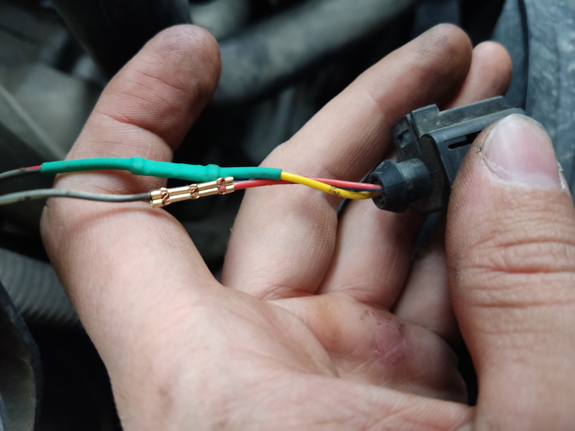 Так же убрал порнографию в виде скруток на датчик температуры топлива. Обжал это всё дело в автоклеммы и изолировал термоусадкой.