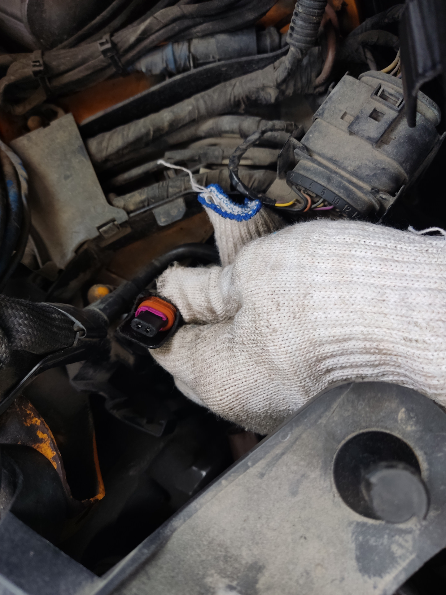 Далее решил немного подшаманить электрику. Заменил убитую сервисменами фишку, идущую на этот датчик. Пины вытаскивал с помощью набора с Али и такой то матери.