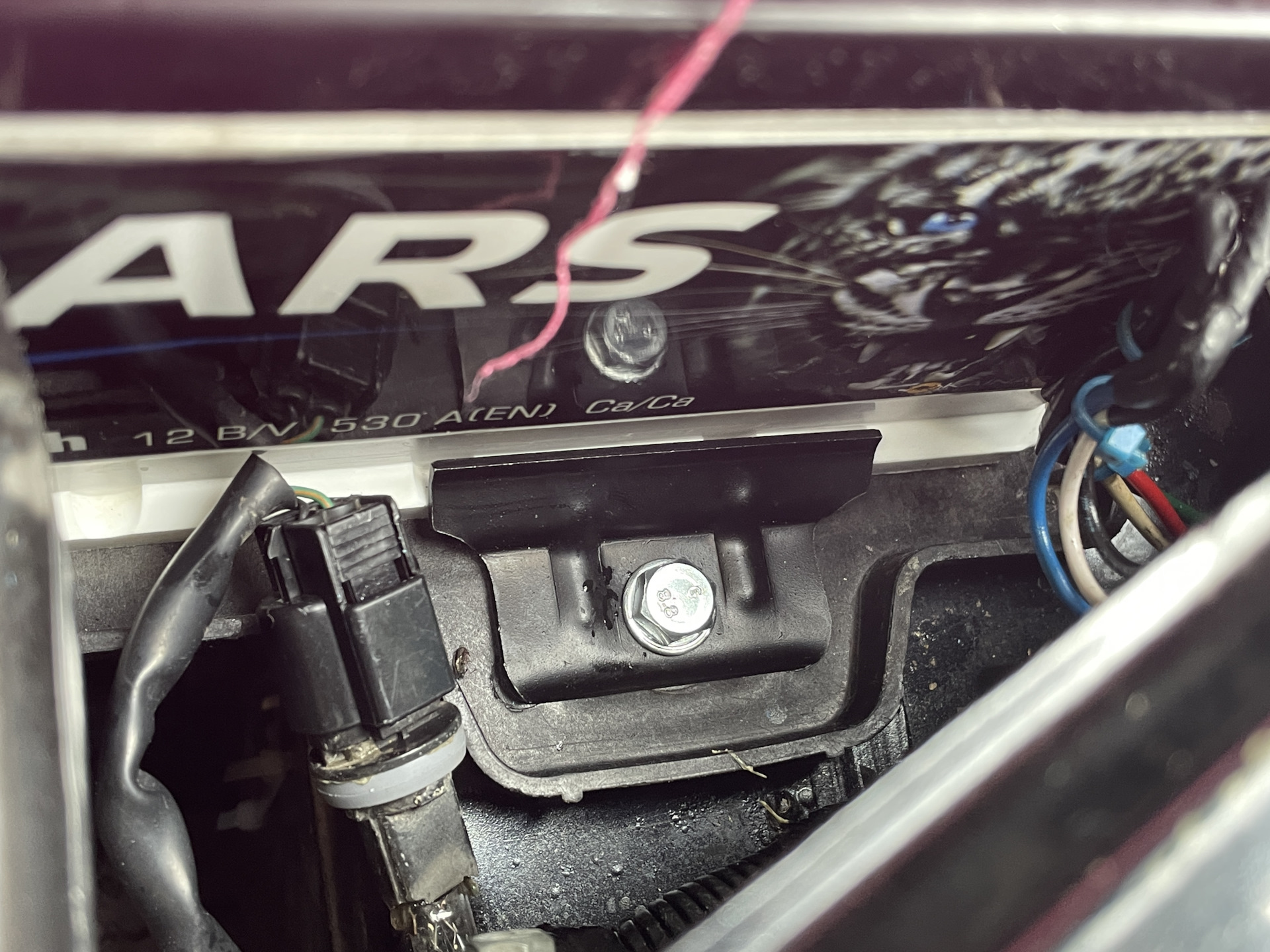 В Леруа приобрёл болты, но к сожалению там были только на 13. Взял разной длины чтоб наверняка и о чудо! Всё влезло, всё получилось, теперь аккум закреплён, выкрутить его без моей трещётки, тот ещё квест, там как раз габарит проходит, который к слову в фаре уже не держится, наживлён. Крепление поддона дополнительно закрепил болтом на 10 за воздушный фильтр.